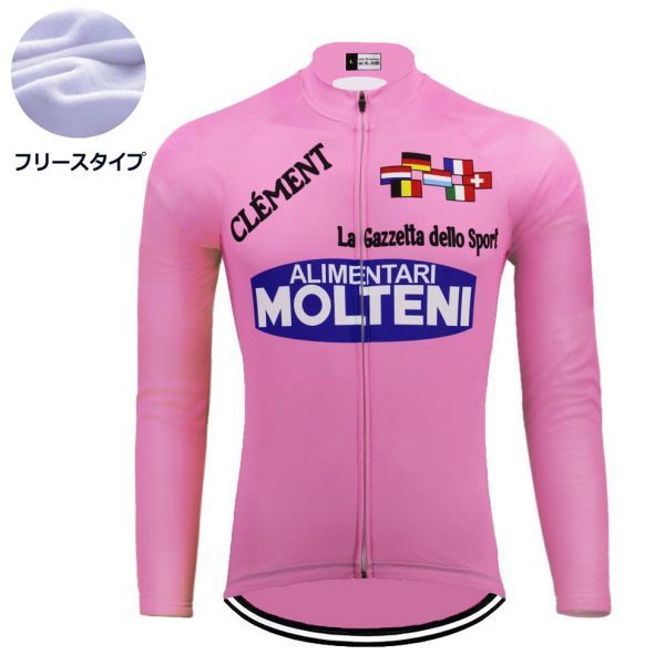新品 長袖 裏起毛 サイクルジャージ レトロデザイン No40 L イタリア フルジップ ウェア メンズ サイクリング フリース ロードバイク MTB
