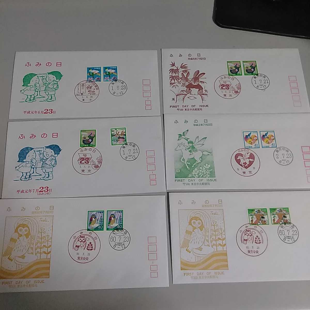8 ふみの日初日カバー6枚セット 昭和60年~ First day Cover東京中央郵便局
