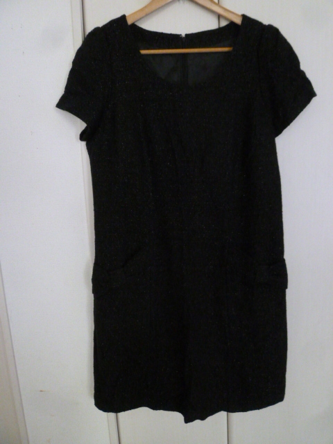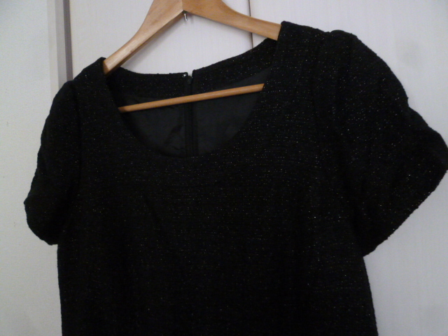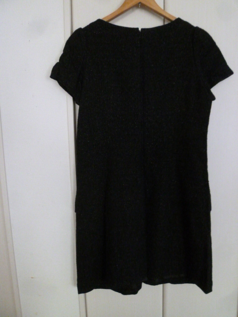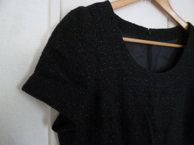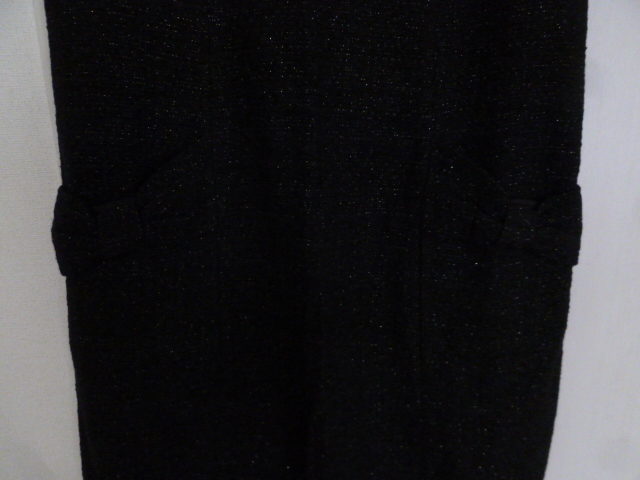 PEYTON PLACE/ペイトンプレイス○黒ラメリボンポケットワンピース15B/大きいサイズビックサイズブラックフォーマル結婚式膝丈○OP1118