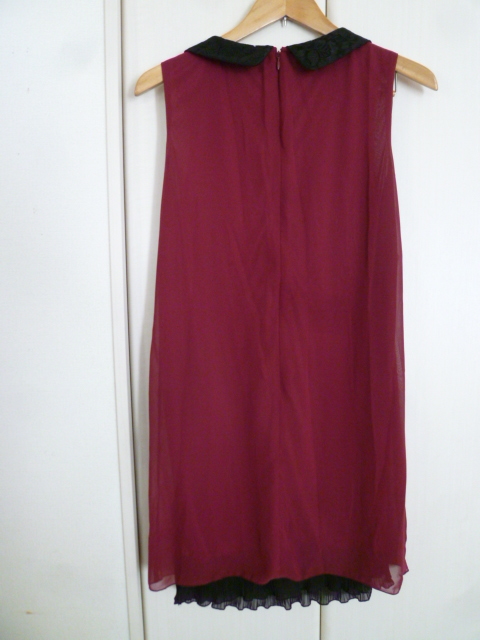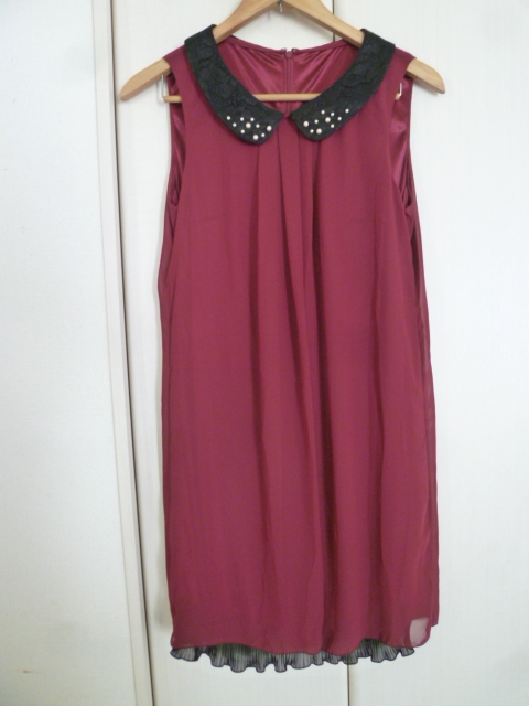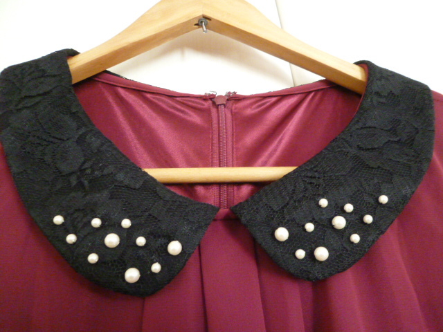 O.N.K2.Y.O○ワイン色黒レースパール襟シフォンワンピース11AR/11号Lブラックボルドー結婚式フォーマルパーティー入園入学卒園卒業○OP1120
