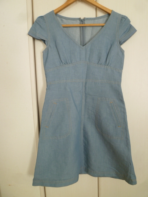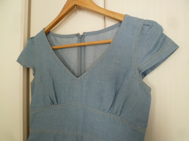 22OCTOBRE/ヴァンドゥーオクトーブル○デニム風素材レトロデザインコットンワンピース38/東京スタイル半袖膝丈○OP1121