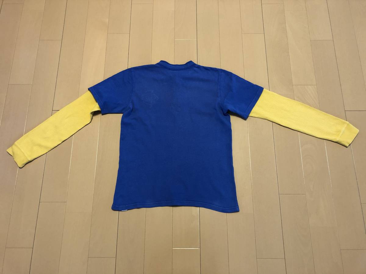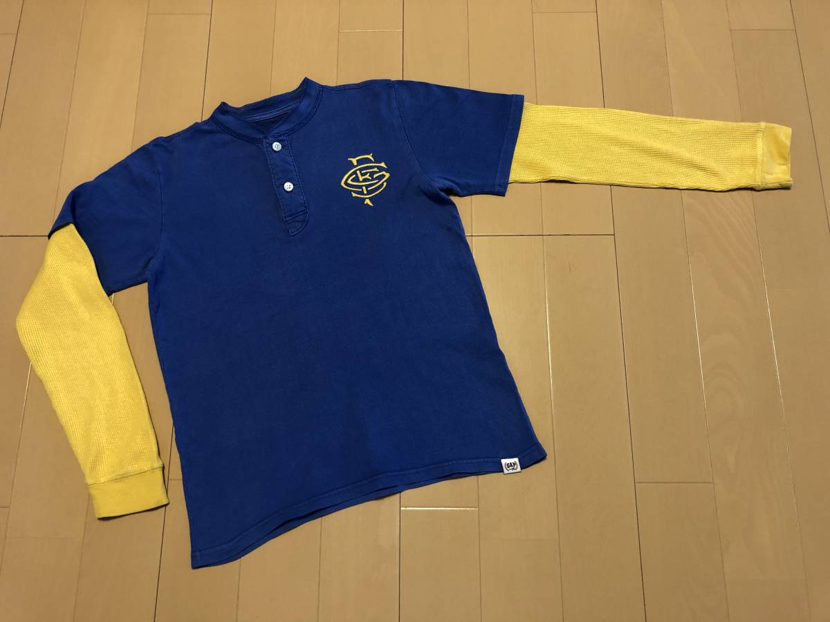 ●○ Gap ギャップ ヘンリーネックTシャツ レイヤード風 重ね着風 ロングTシャツ(ロンT) 150~160 青×黄色 ○●