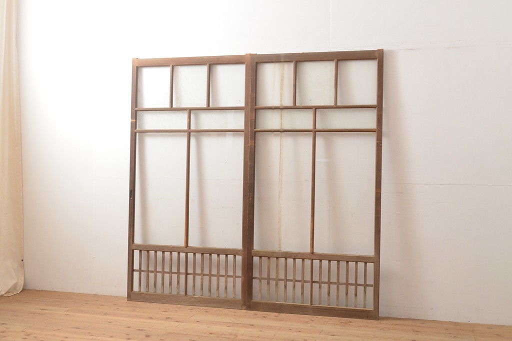 R-054374 アンティーク建具 上手物 大正ロマンな雰囲気漂うガラス窓2枚セット(引き戸、ガラス戸、建具)(R-054374)