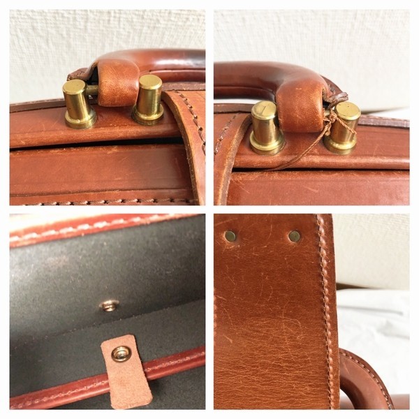 ロイドフットウェアの展開するロイズラゲージのダレスバッグを出品します。 人気のダレスバッグになります。 表示がないので断言保証致しかねますが、恐らくブライドルレザー系の素材を丁寧に仕立てています。 今や入手困難な品ですので、この機会にいかがでしょうか。 ファスナー部分がカラフルになっていてさりげなくお洒落です。 この機会にいかがでしょうか。 状態は表面・内張り・金具共に使用に伴う摺れ汚れ、傷、汚れ、また角摺れ等に加え 金具縁中心に青緑(錆)、表面の薄傷や汚れ、フラップ部分中心に色褪せや皺、持ち手の黒ズミ等ございます(写真参照)が、 破れなど使用に支障の出るダメージもなく、10段階中6.5程でしょうか。 経年から考えるとかなり良い状態かと思います。 ただユーズドで見落としもあるかもしれません。 写真でご確認の上以上承知してご入札下さい。 細かい点が気になる方はもういちど良くご考慮なさってご入札下さい。 |