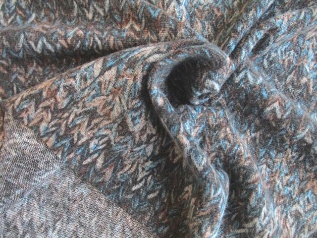 | ★リアルなメリヤス編みプリントニット生地*茶ブルー系 | |||