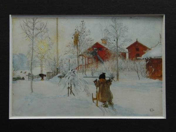 カール・ラーソン、The Yard and the Washhouse、希少な額装用画集より、新品高級額装付、状態良好、送料無料、y321