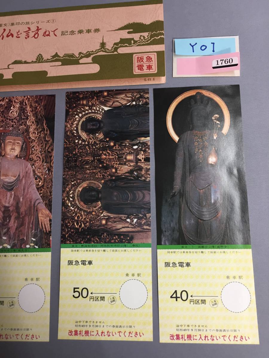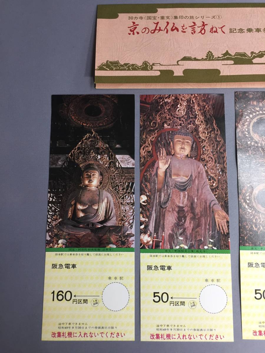 阪急電車 京のみ仏を訪ねて記念乗車券 30カ寺(国宝・重文)集印の旅シリーズ①昭和49年7月 乗車券4枚【Y01-1760】
