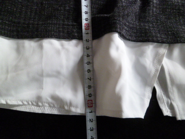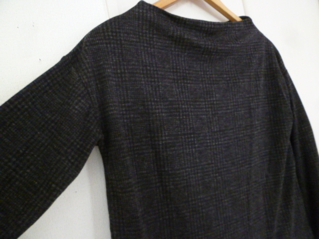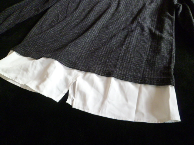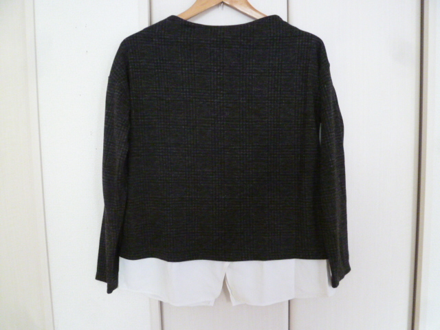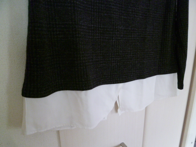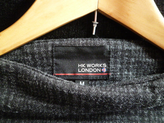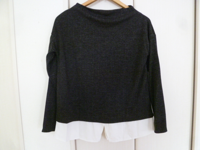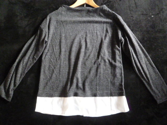 HK WORKS LONDON○黒グレー系千鳥格子柄裾ブラウスフェイクツイン風異素材ドッキングカットソーM/ボートネックモノトーン系○⑥ST1022