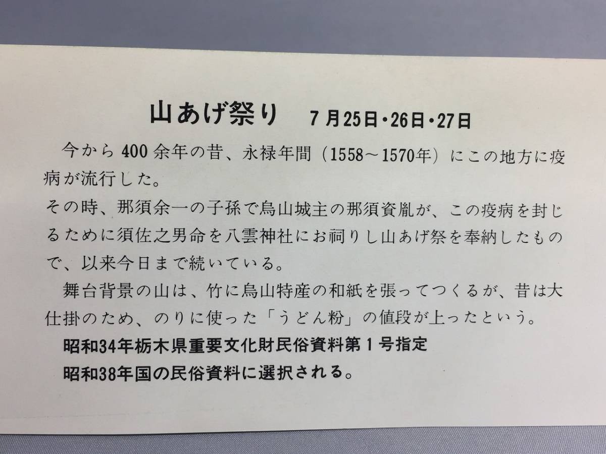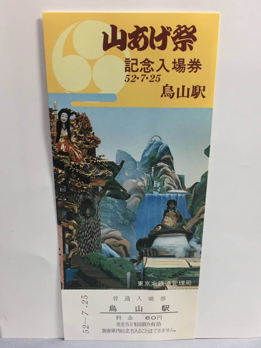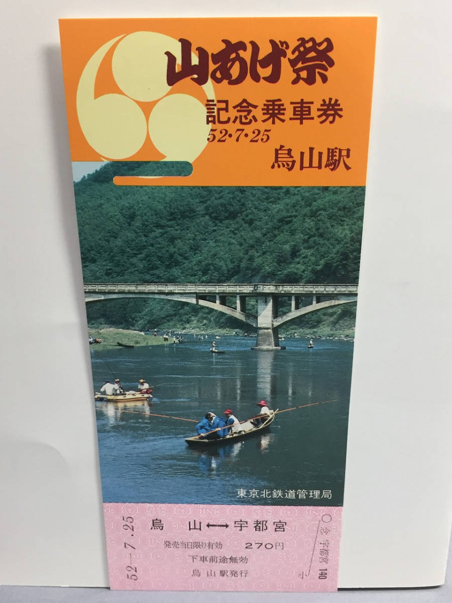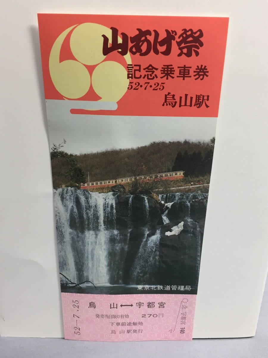国鉄・東京北鉄道管理局 昭和52年7月16日 烏山線烏山駅 山あげ祭記念乗車券・入場券乗車券・入場券3枚 【k12-0028】