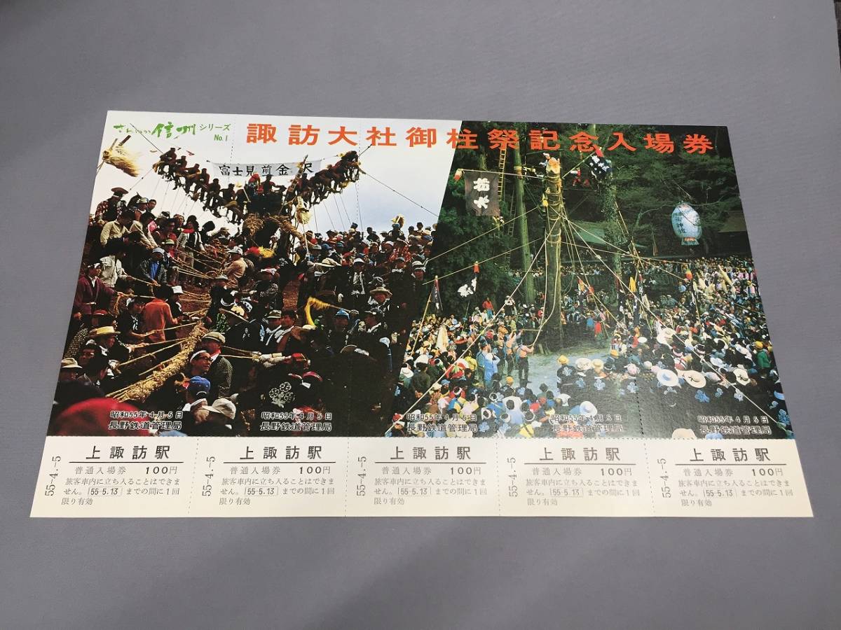 国鉄・長野鉄道管理局 昭和55年4月5日 諏訪大社御柱祭記念入場券 5枚【K17-30】