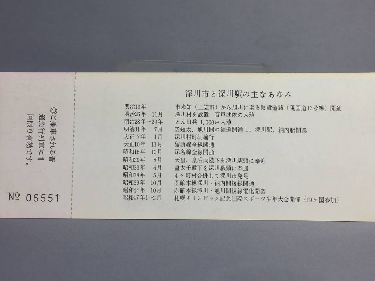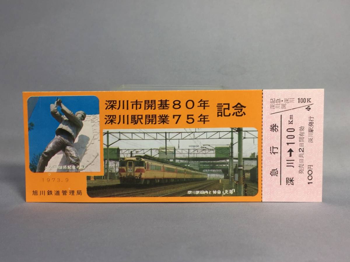 深川市開基80年・深川駅開業75年記念急行券 1973年 旭川鉄道管理局 【K8-08】