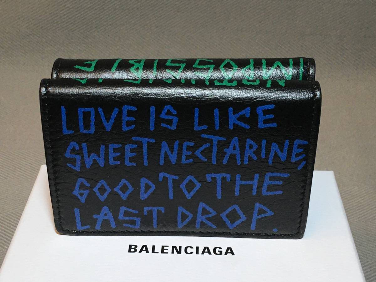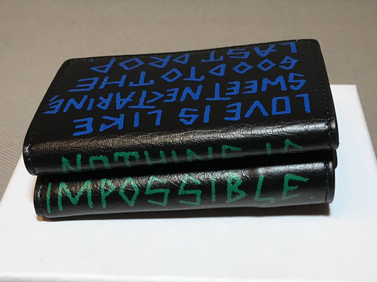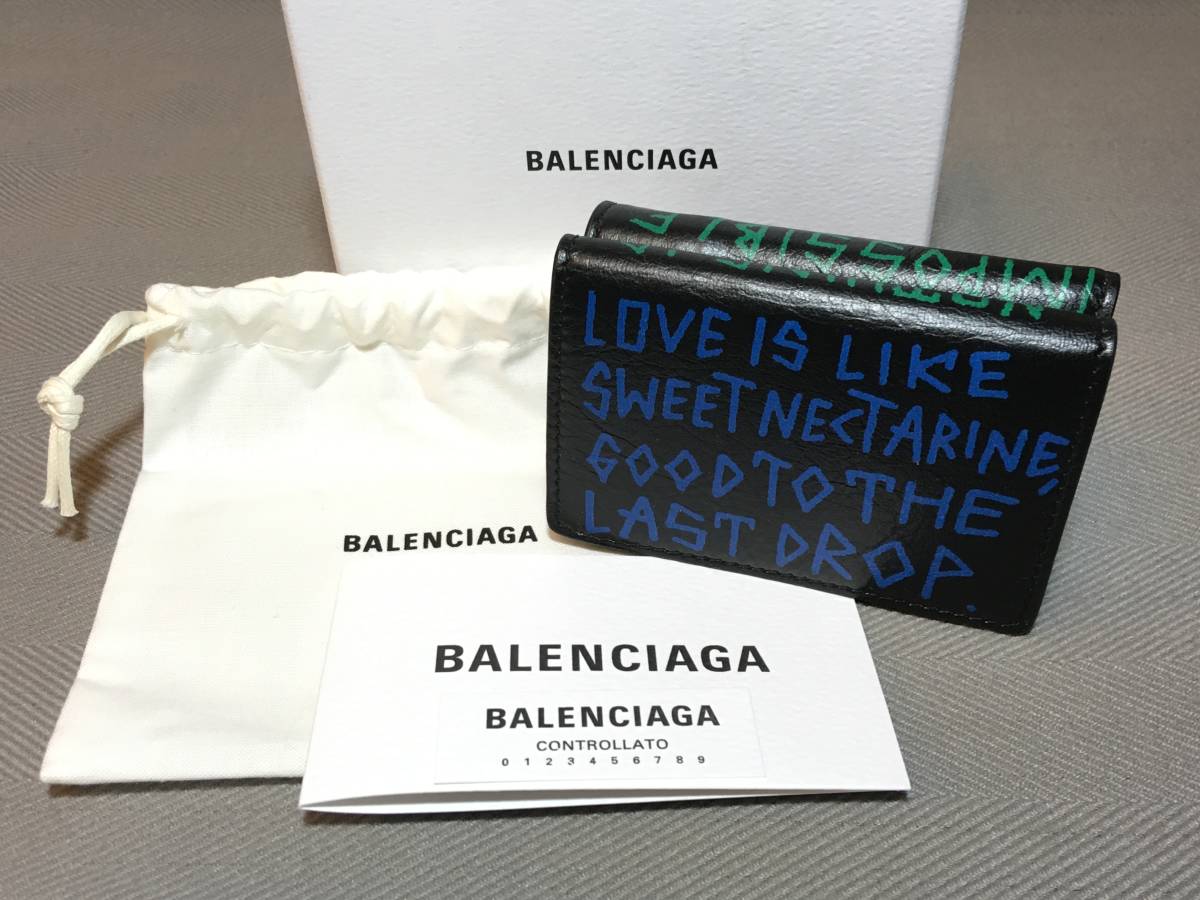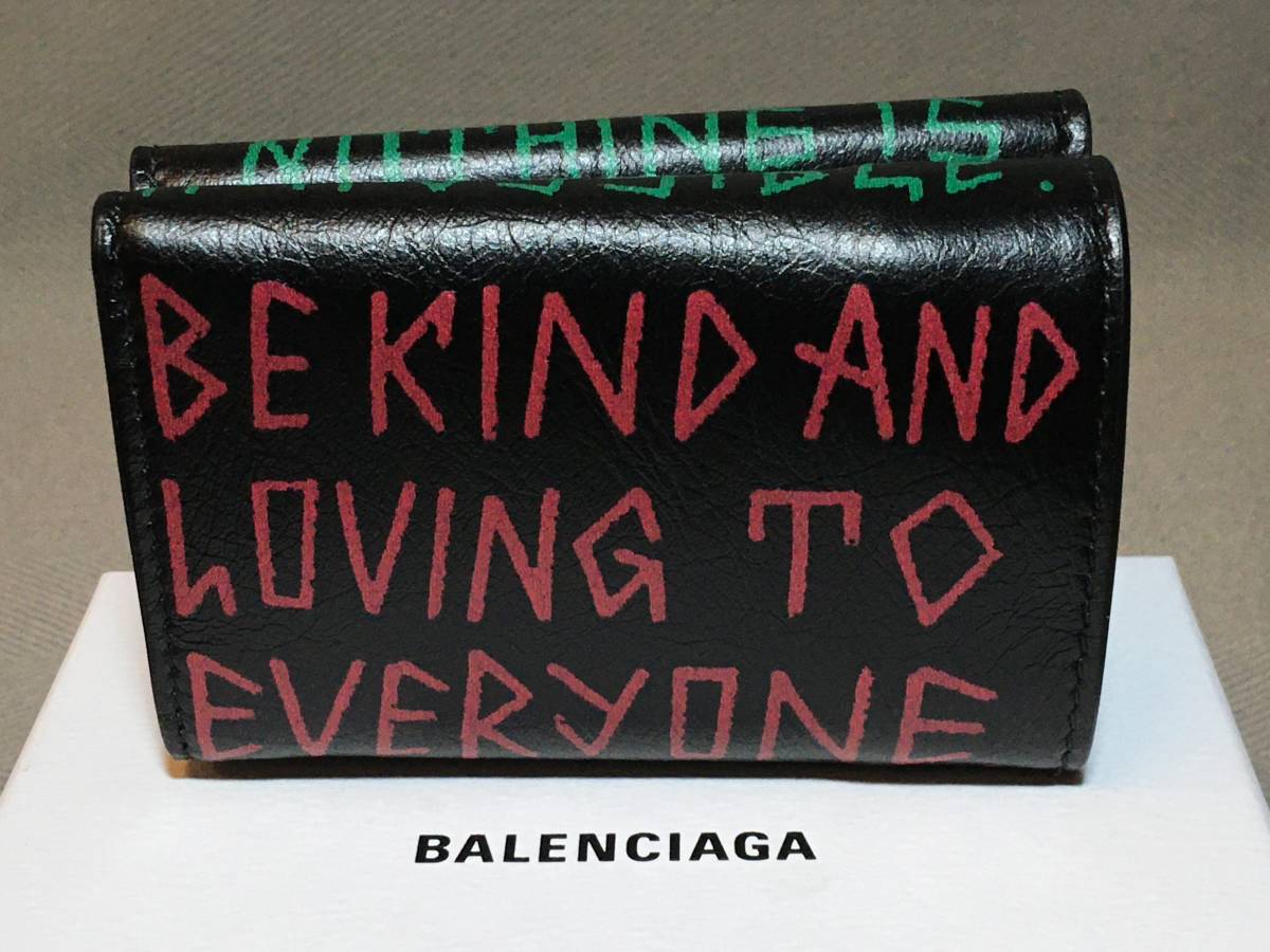 新品 本物 バレンシアガ グラフィティ 三つ折り ミニ ウォレット レザー 本革 財布 エブリデイ 黒 ブラック グラフィック BALENCIAGA