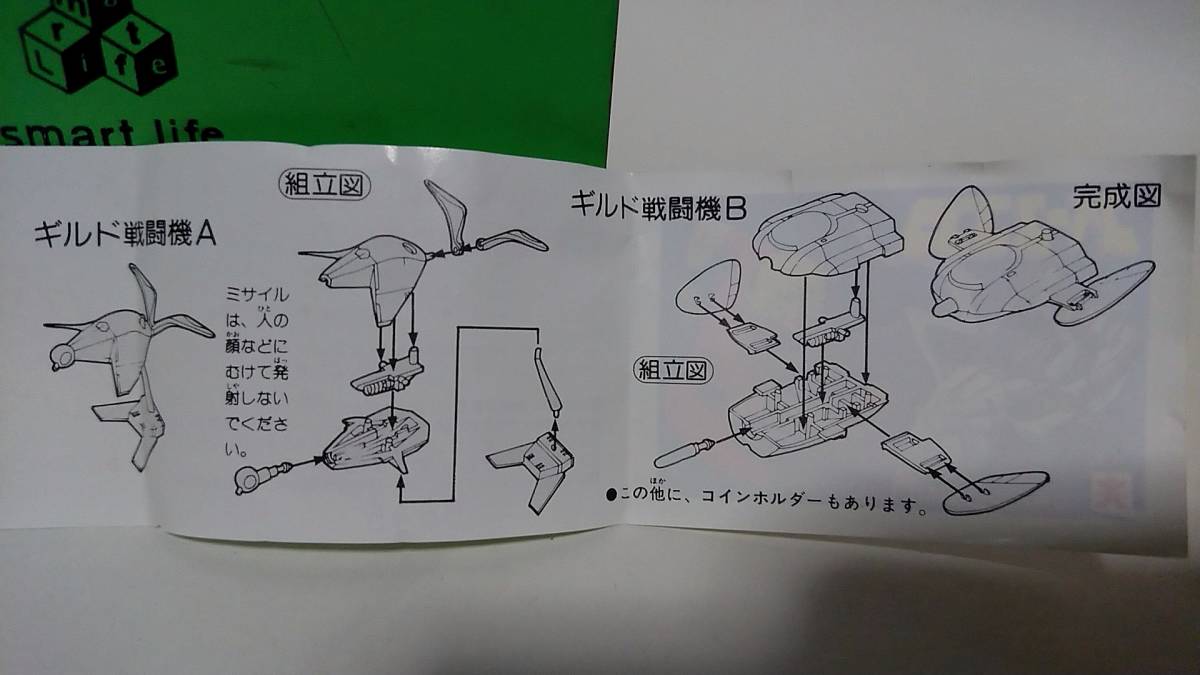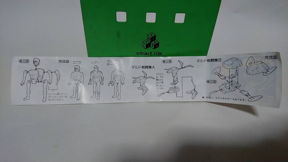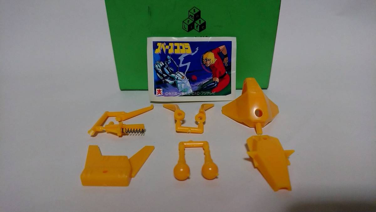 スペースコブラの放送当時に発売されたミニプラ、ギルド戦闘機Aになります。ミサイル2個付きでスプリングにて発射出来ます。カッコ良い台座付きです。