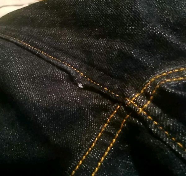 少し右足股の付け根付近、穴ではないですが裁縫のミスぽいところあり、