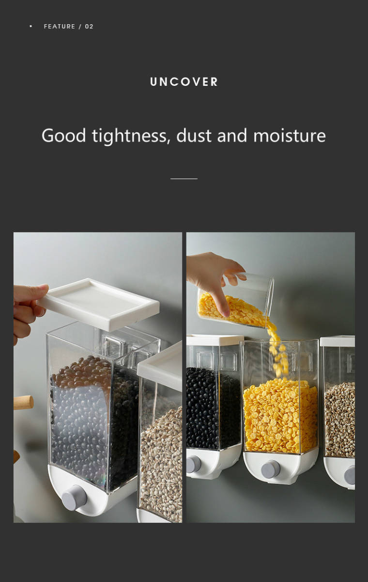 小麦粉、砂糖、米、穀物、ナッツ、豆、スナック、パスタ、コーヒーなどを保管します。
