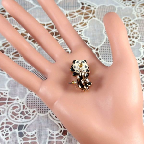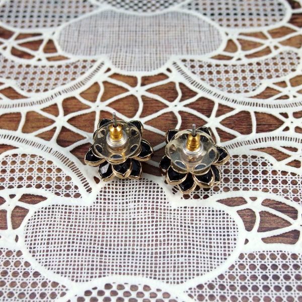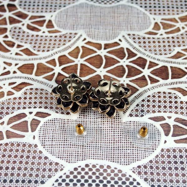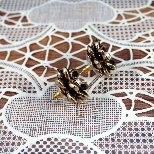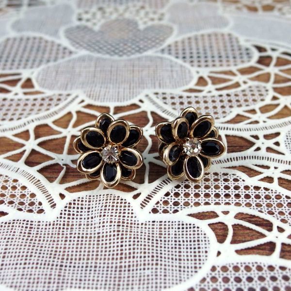 A2715◆ 黒いフラワーモチーフのヴィンテージピアス * イヤリング ◆