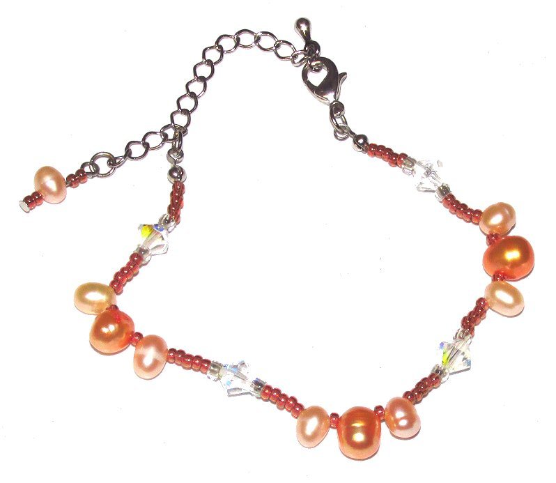 淡水本真珠×レインボー・スワロフスキーカットビーズ★ブレスレット