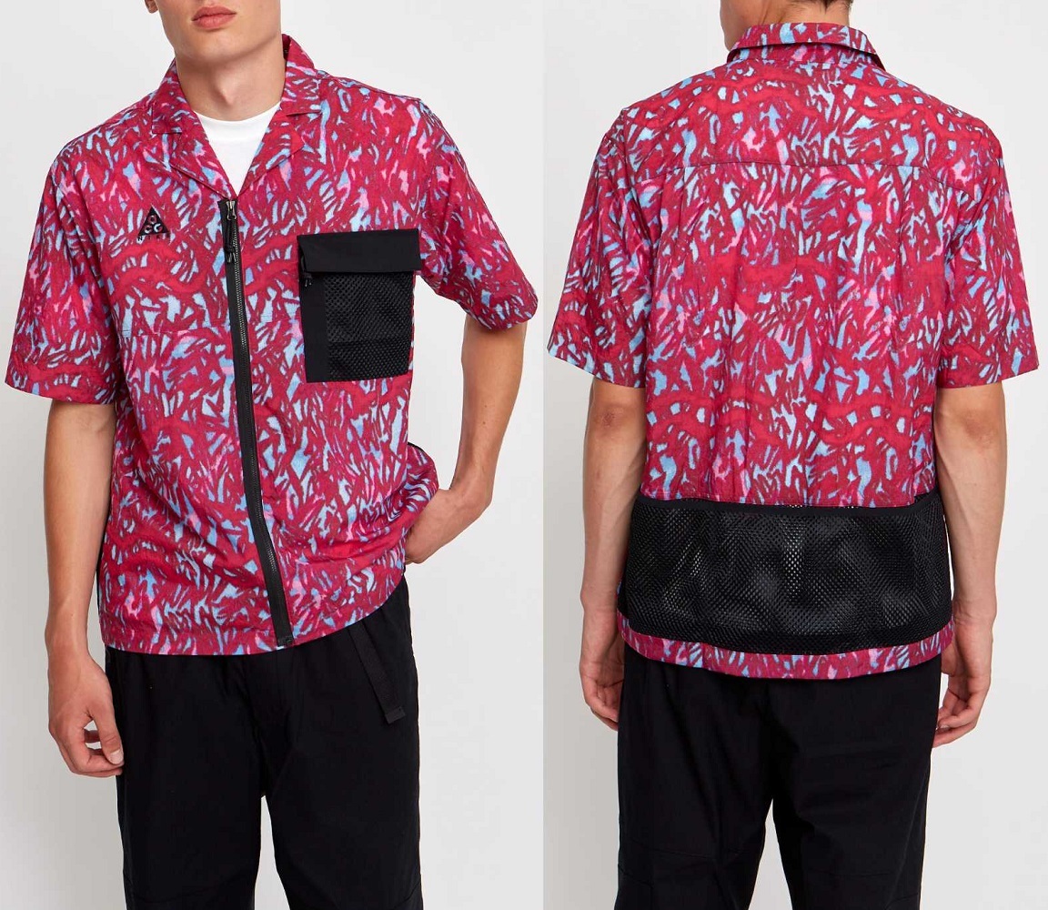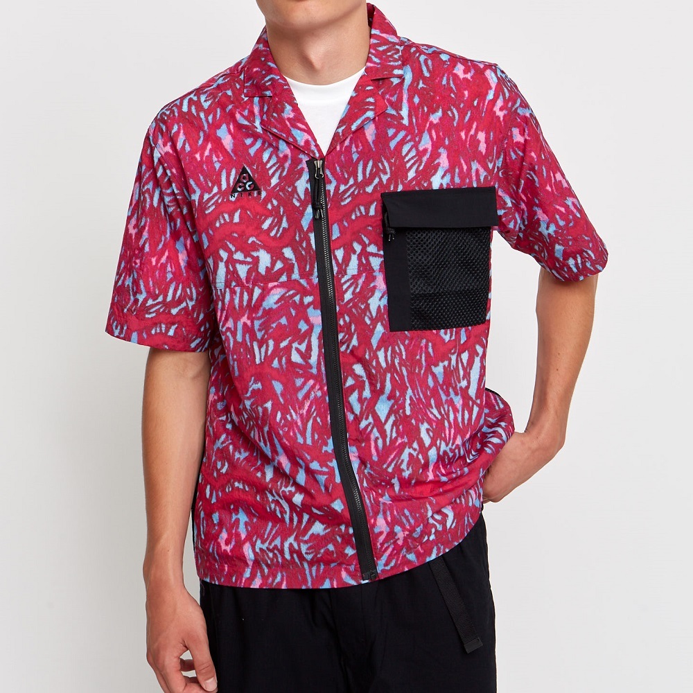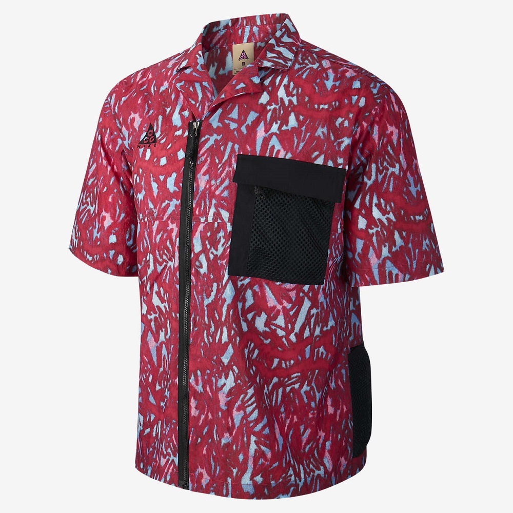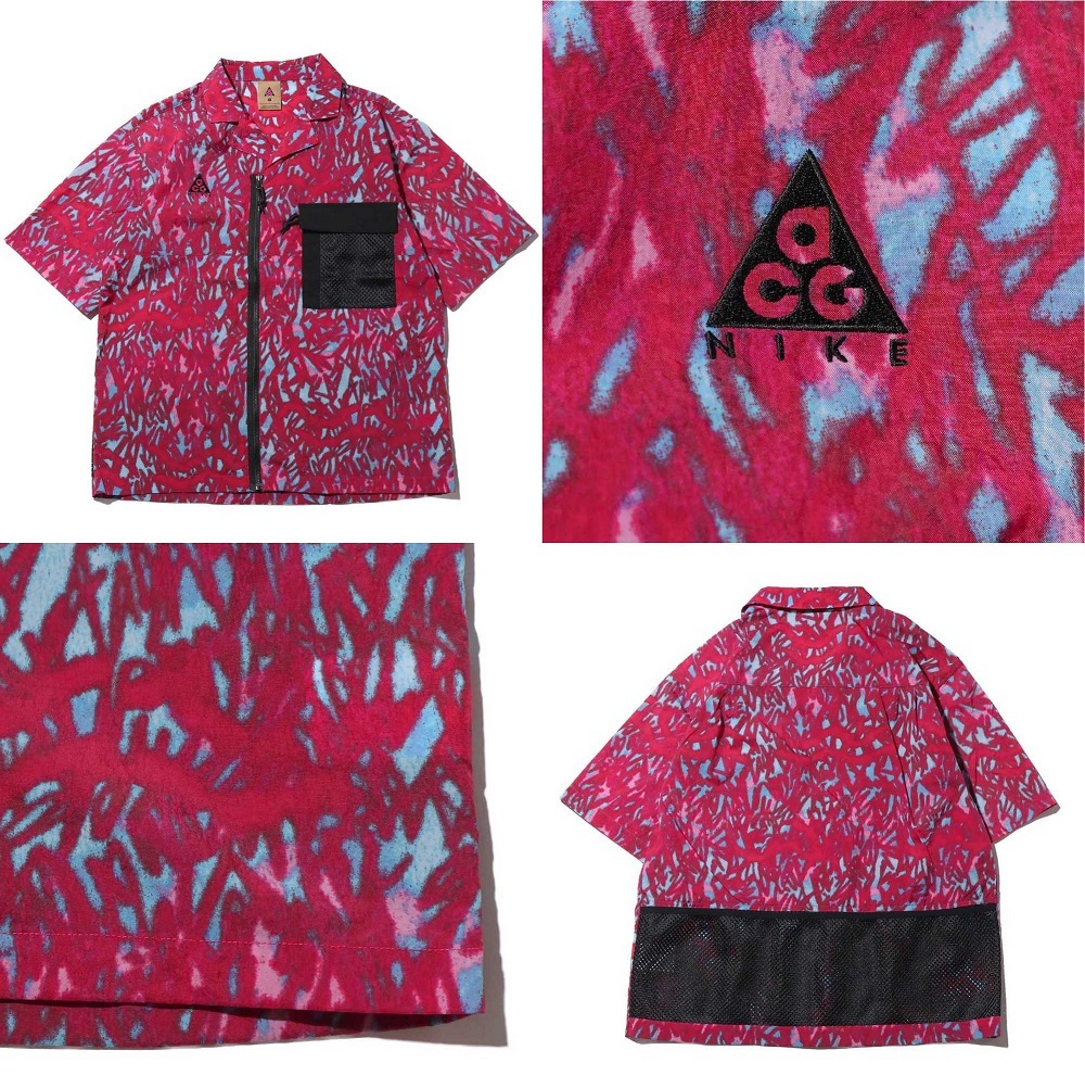 ナイキ S エーシージー ナイロン 半袖シャツ 定価13750円 ハバネロレッド ブラック ACG ジップアップ
