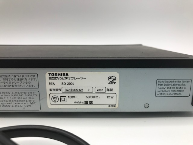 TOSHIBA 東芝 DVDプレイヤー SD-290J 動作未確認