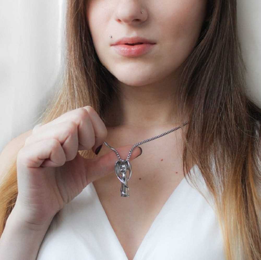 ペンダントのトップに遺骨や遺灰、遺髪等を少量納めて身につけられるジュエリーです。