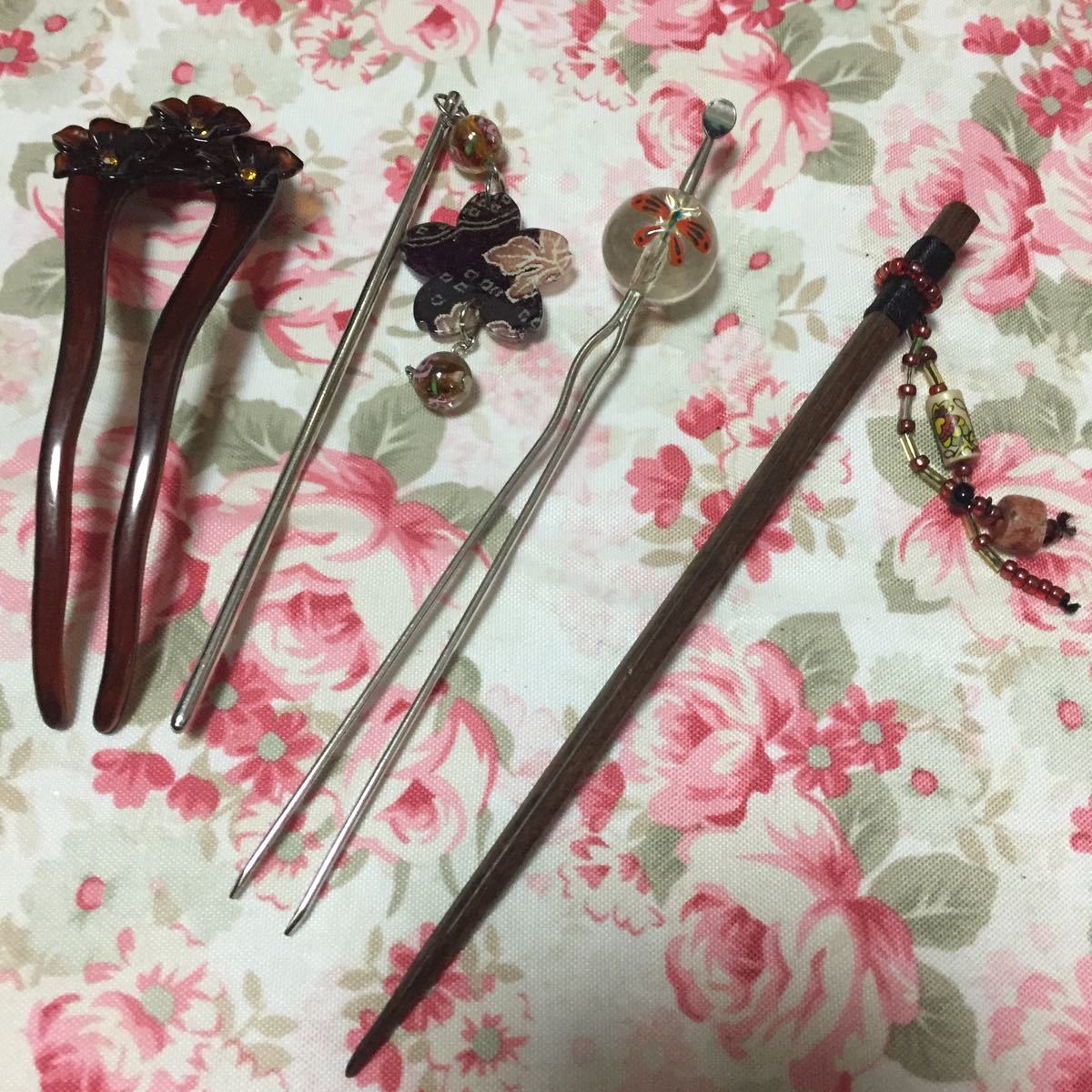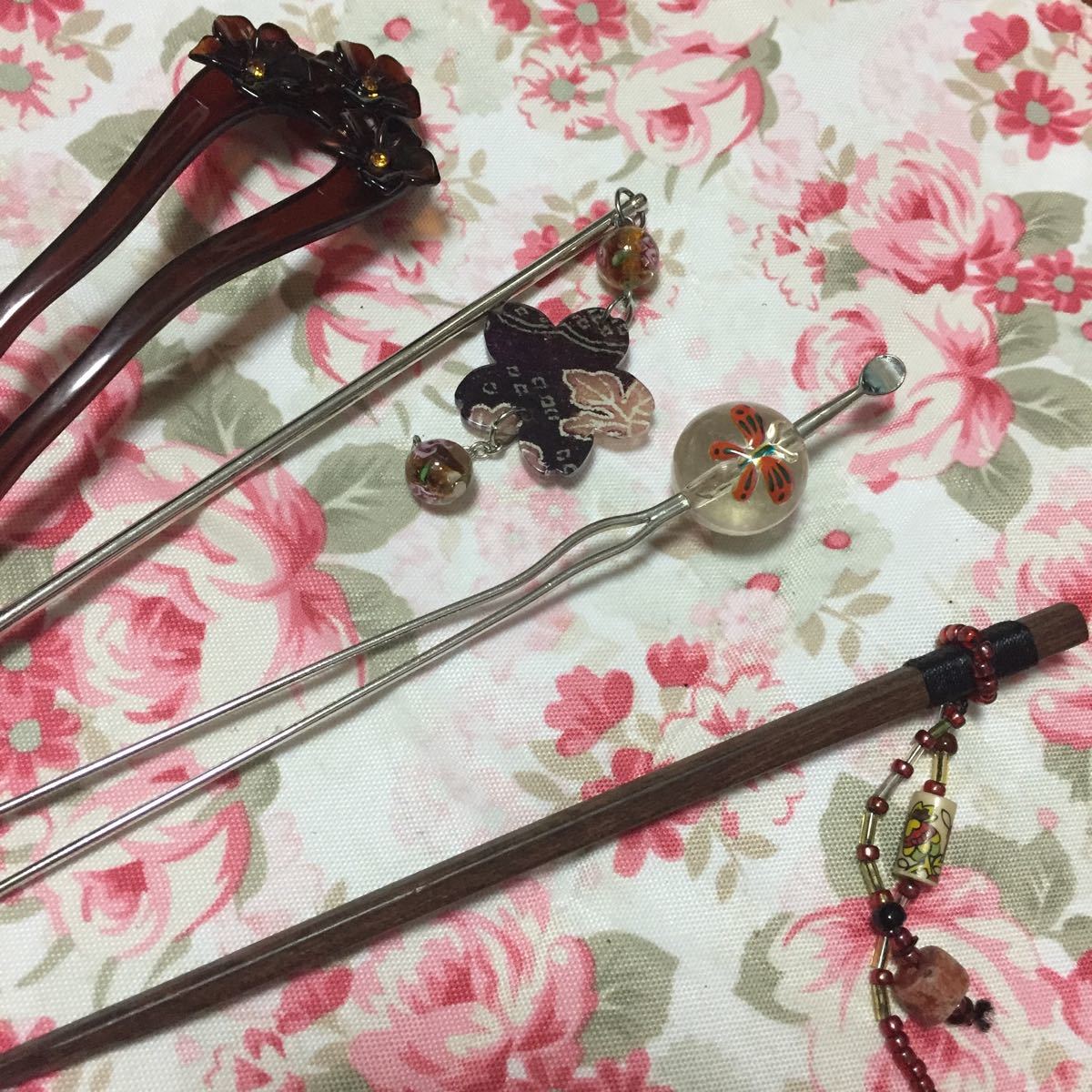 かんざし4本セット とんぼ玉 木製アジアン エスニック 桜モチーフ ヘアアクセサリー
