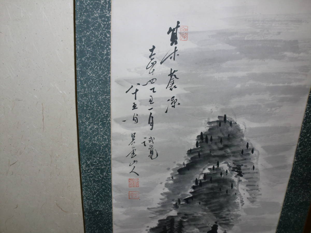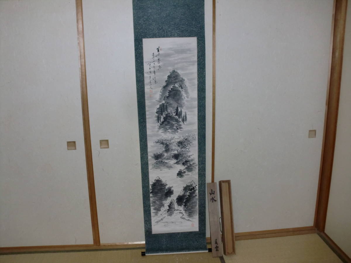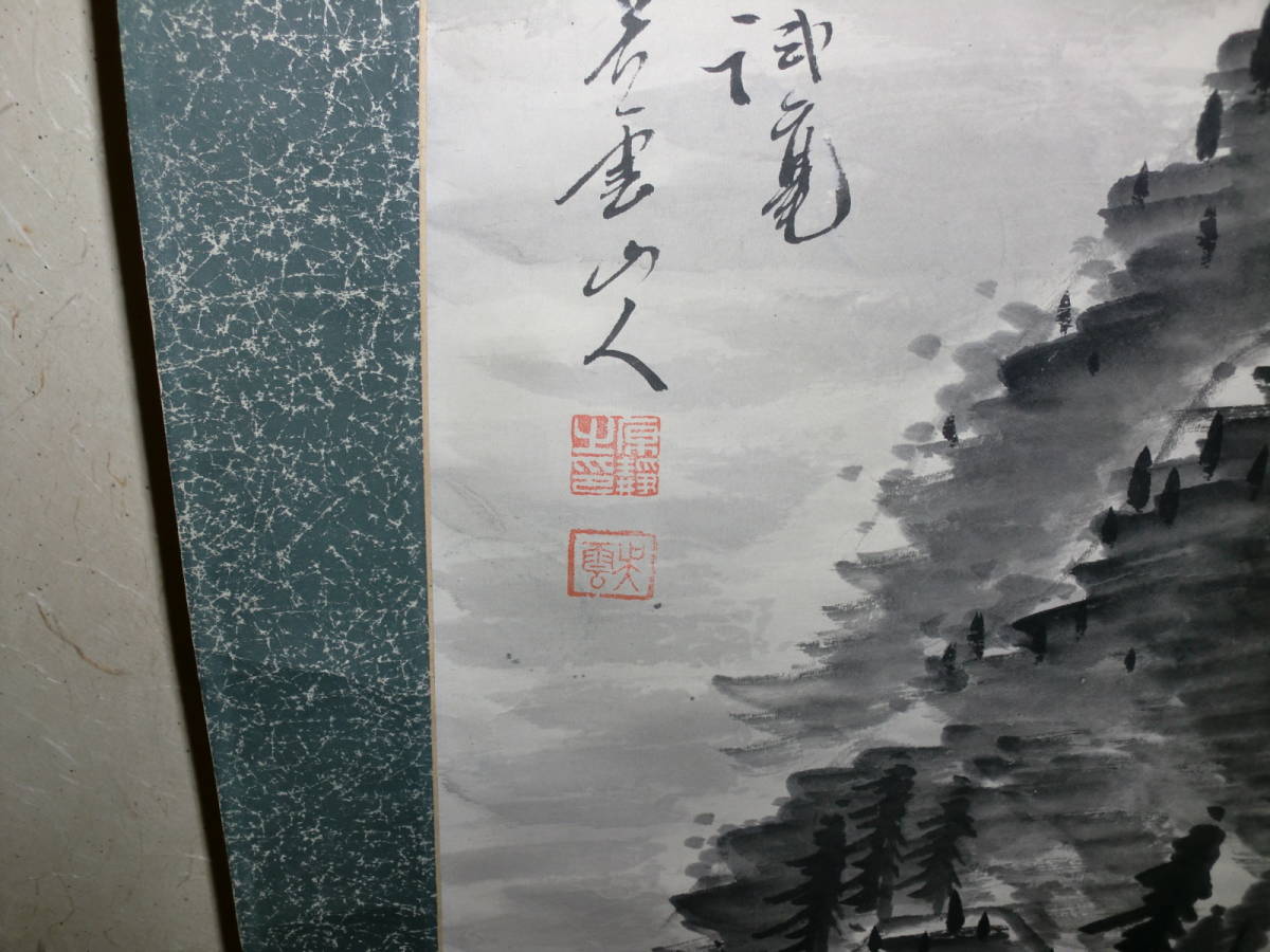 【模写】 掛軸 並川呉雲 トテモ渋ーい水墨山水圖 印刷ではない 紐付き極箱