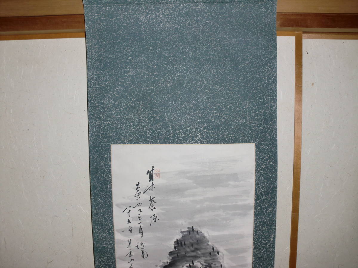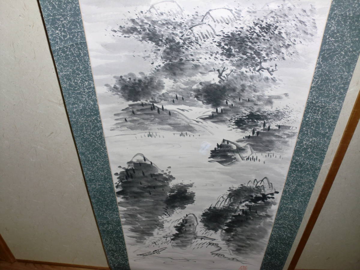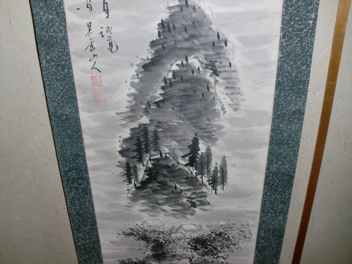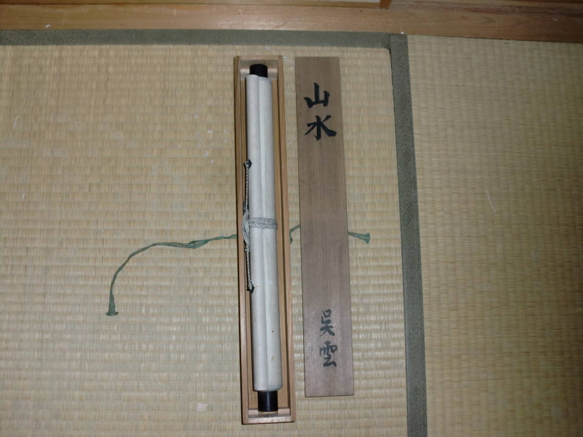 【模写】 掛軸 並川呉雲 トテモ渋ーい水墨山水圖 印刷ではない 紐付き極箱