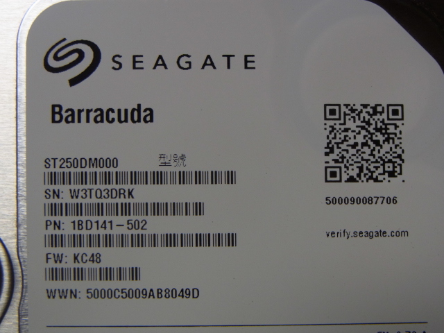 Seagate Barracuda ST250DM000 7200rpm 16MBキャッシュ