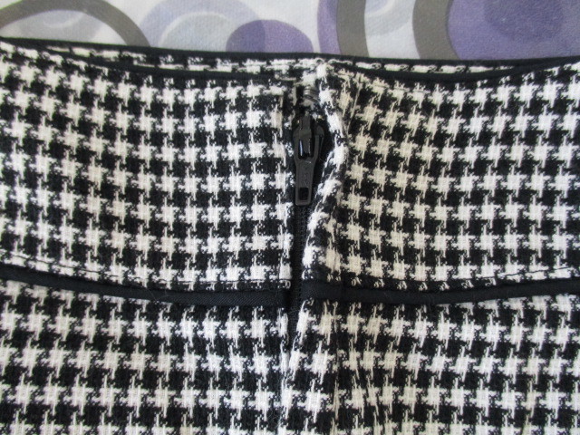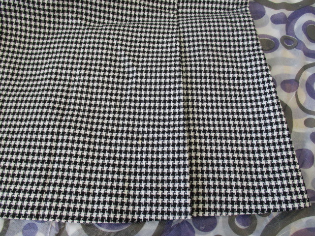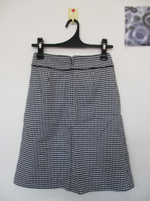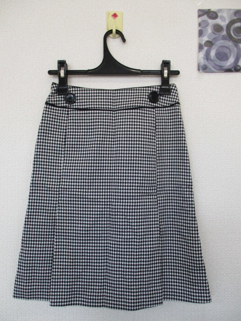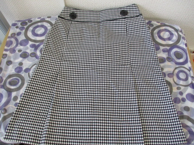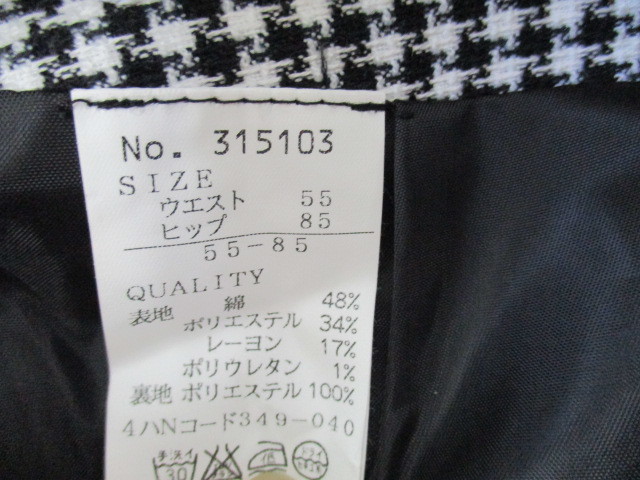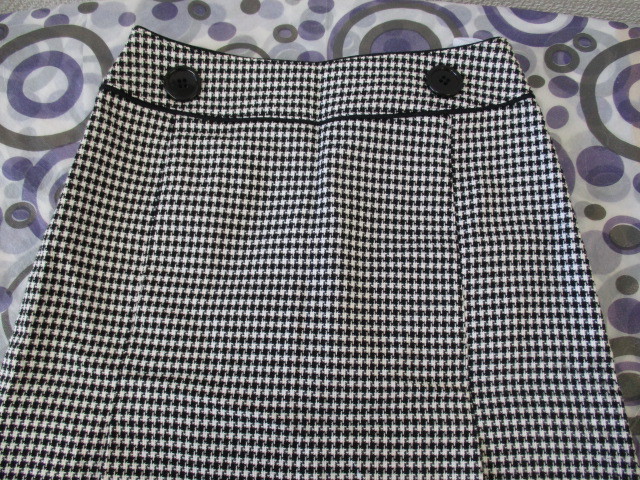★ひざ上丈 台形スカート 千鳥格子 ウエストボタン飾り 白×黒(ウエスト55-85)