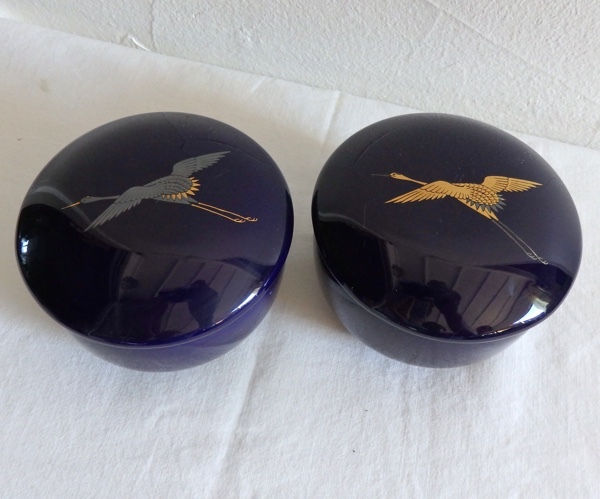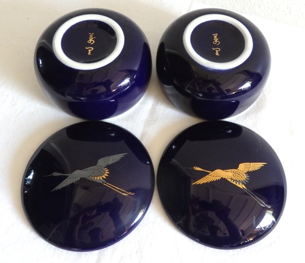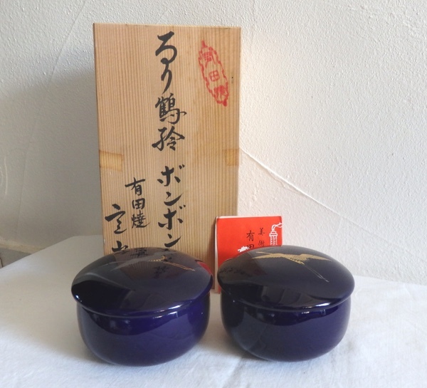 有田焼 宝山作 るり鶴 ボンボン入 蓋付 小鉢 小物入 ノベルティ 未使用品 共箱付です。