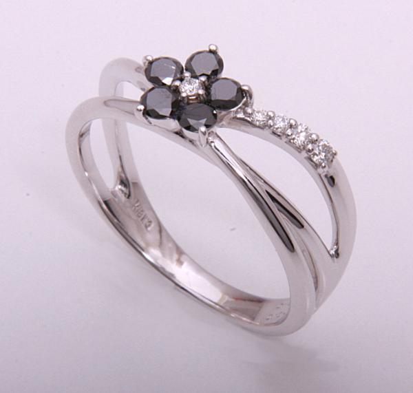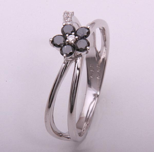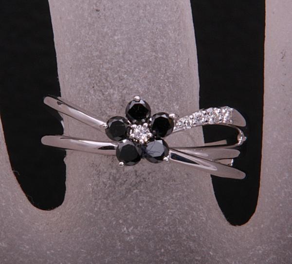 ブラックダイアとメレダイアが輝くフラワーモチーフのリングです。