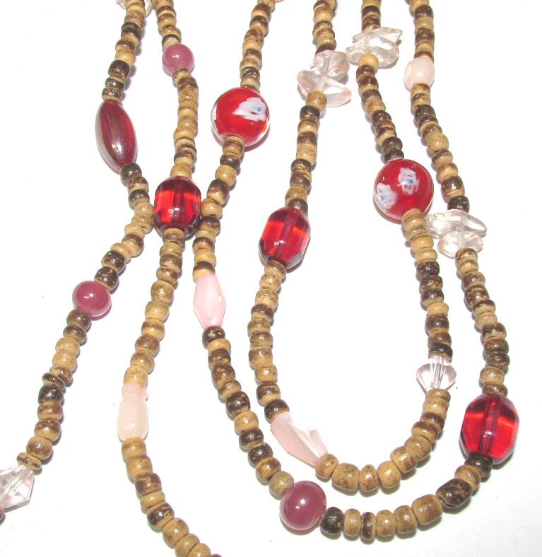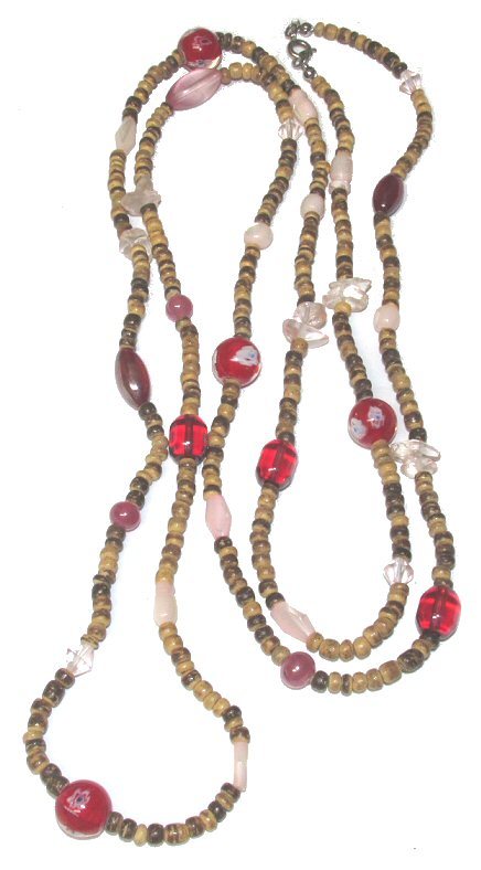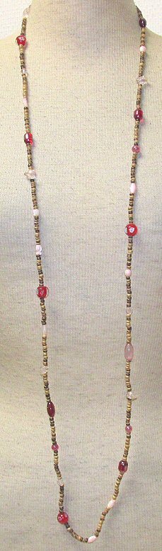 ベネチアンガラス×天然ローズクオーツ×ウッドビーズ・スーパーロング★ネックレス