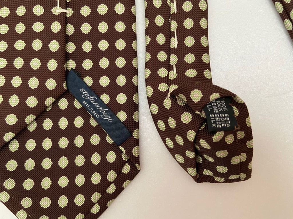 stefanobigi イタリア製シルクネクタイ ドット柄 ブラウン ステファノビジ