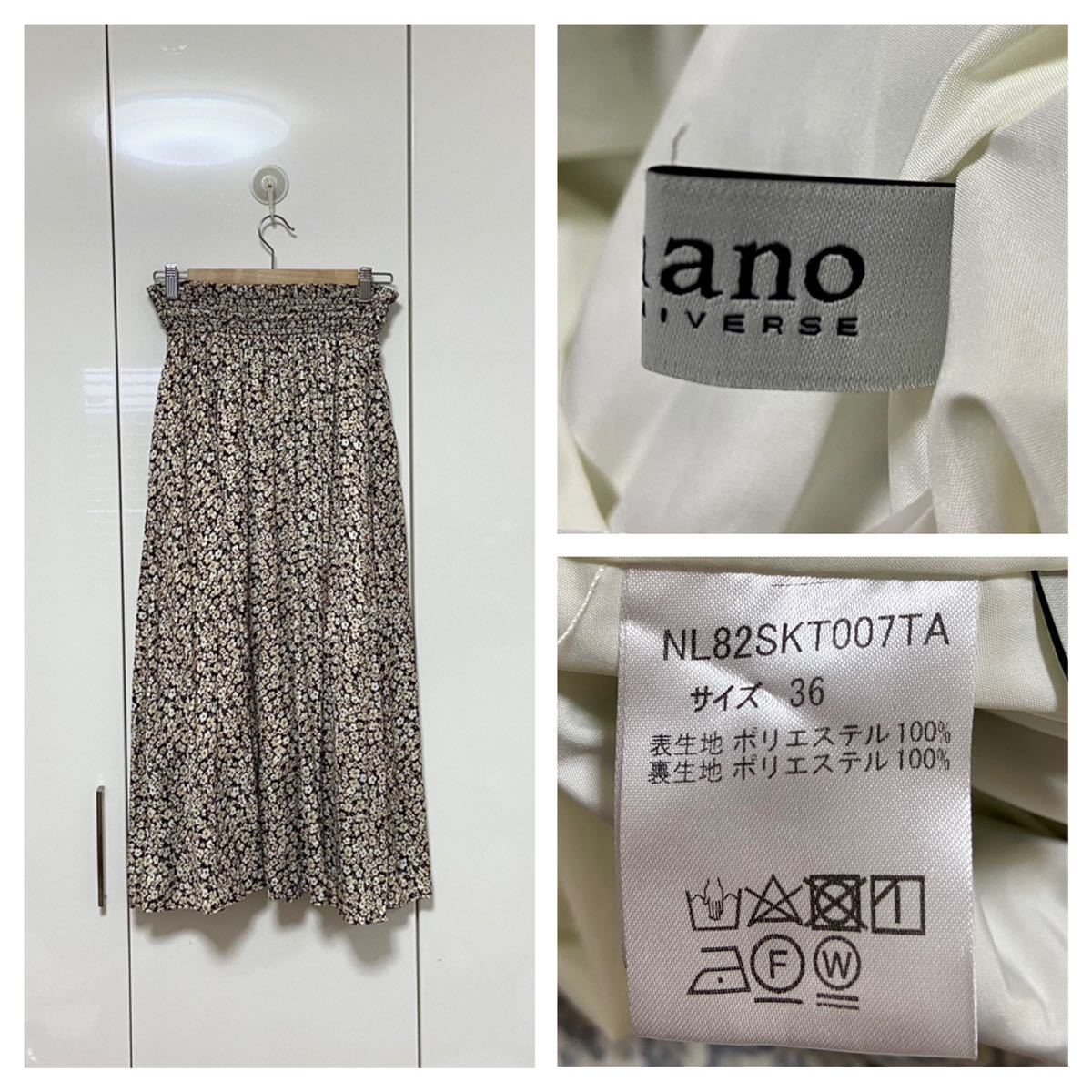 ナノユニバースのフラワーシャーリングスカートです。特筆する汚れやダメージはありません。