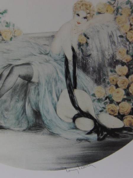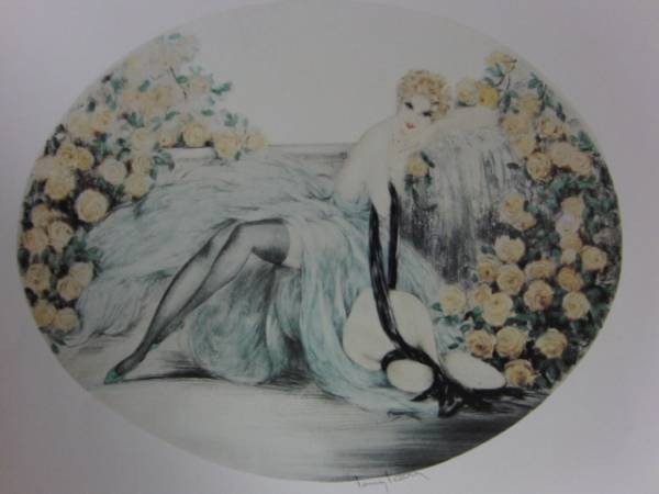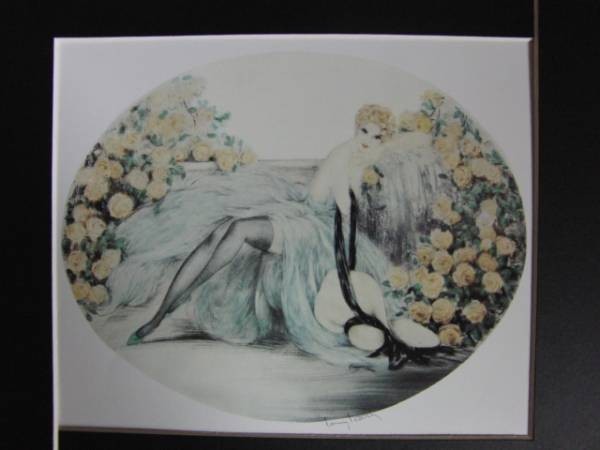 ルイ・イカール・LOUIS・ICART、アールデコ、作品名はバラ、豪華高級限定版画集・定価10万3千円の画集をほぐして1部1点を額装致しました(コピー、オフセット印刷ではありません)。保存状態はとても良好です。新品の額付です。額のサイズは約38cm×30cm、額枠は黒色、マット(内窓)付、アクリルガラス付の新品額です。作品のサイズに合わせ、専門店にてオーダーマットを作成の上額装致します。円形・楕円形の作品につきましては、サイン部分が隠れないように調整し、マットも円形・楕円形にカット致しますので、優雅で見ごたえのある仕上がりをお楽しみ頂けます。≪カラー額装ご希望のお客様は、別途額代金、10000円です。新品、アクリルガラス、オーダーマット付きです。カラーはゴールド、シルバー、パールホワイト、パールピンクがございます。その他ご希望のお色がございましたらお気軽にご相談ください。≫