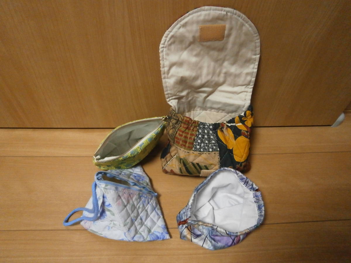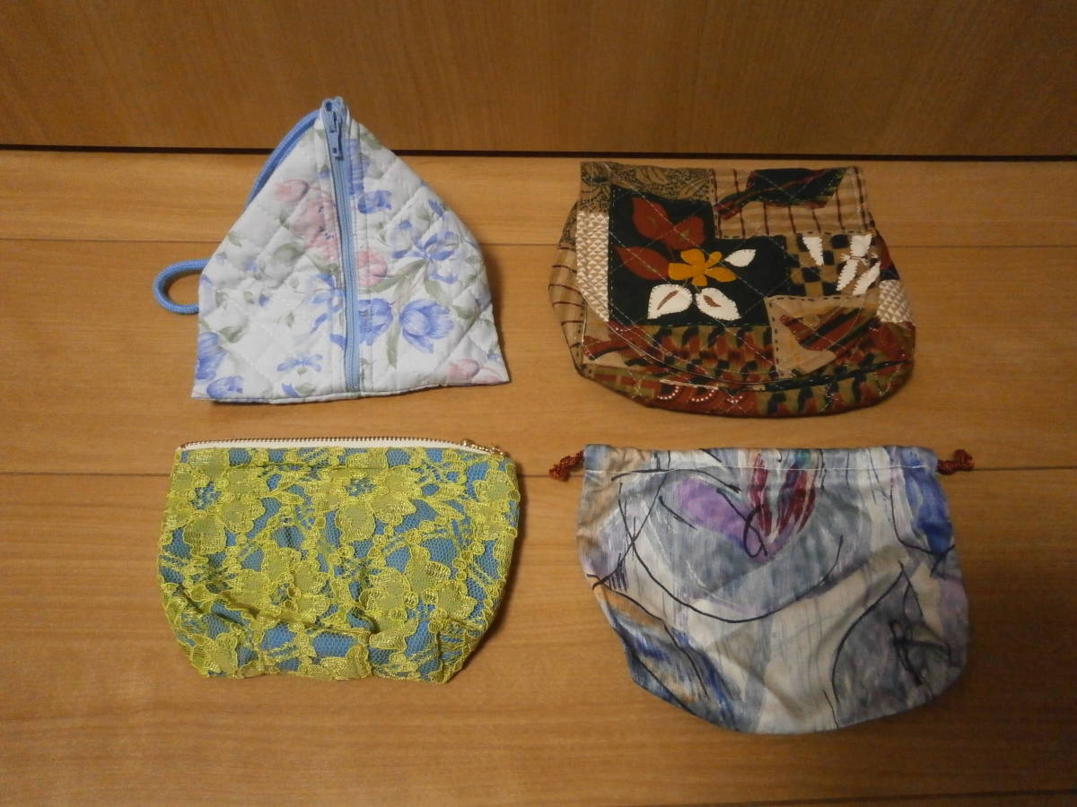 未使用品☆ハンドメイドのおしゃれな三角巾着とポーチなど4個セットB