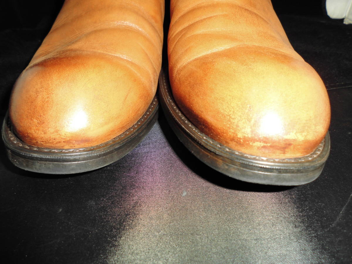アッパーには手仕上げでムラ感を出したつややかなカーフレザーを使用。美しいグラデーションに仕上がっています。