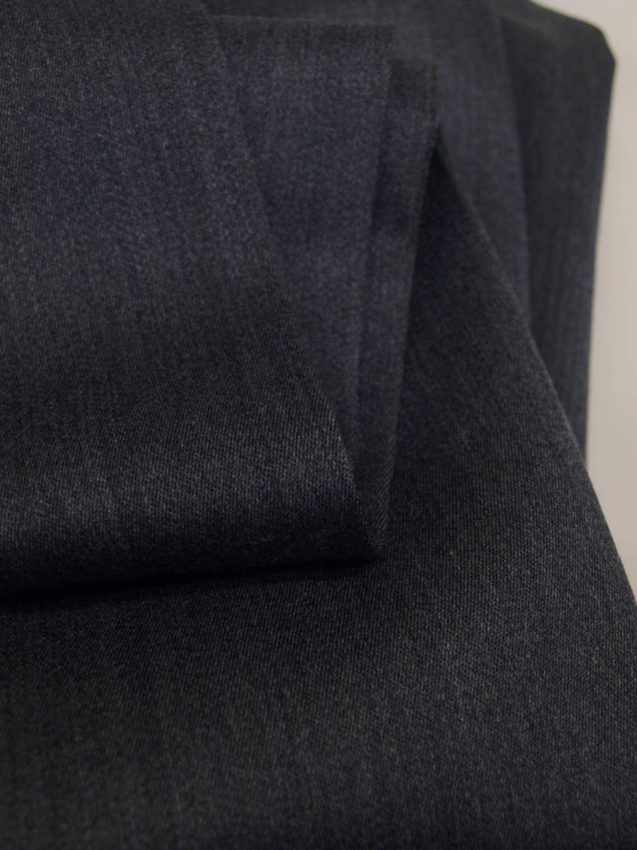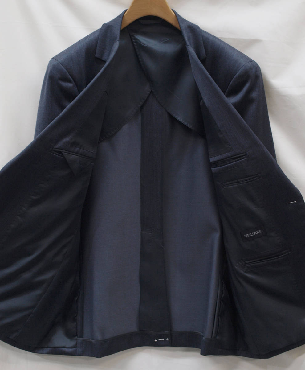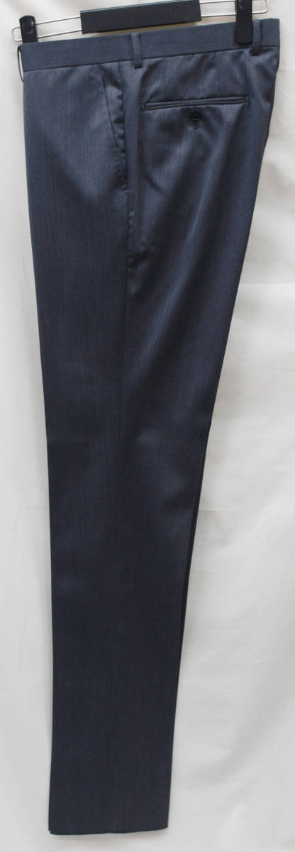 【サイズ】 BB4 (BBS/BE4号相当) 目安の体型 身長160cm~170cm、ウエストサイズ92cm前後 【ジャケット実寸】 肩幅46cm 着丈68cm 袖丈58.5cm 脇下部分53cm 身幅50cm 【パンツ実寸】 ウエスト(胴回り実寸)92cm (平置きでかるくはかると92cmでひっぱってはかると94cmです。股上がやや浅いため実寸が2cmほど大きめに作られております。) わたり幅33cm 股下から10cm下の部分29.5cm 裾幅21.4cm 脇股上25cm 前股上26cm 股下90cm(裾上げしていない状態/新品) 【デザイン】 すっきりとしたコンパクトな印象の細身シルエット、タイトフィット、スリム、ビジネススーツ新品、裾上げしていない状態です。 ・ジャケットはシングル2つボタンでタイトフィットスリムモデル ・パンツは股上がやや浅めで細いシルエットのノータックスリムテーパードパンツ 【仕様】 ・ジャケットはシングル2つボタン、ノッチドラペル、袖口ボタン3つ、センターベント、内ポケット4つ(小ポケット2つ含む)、背抜き(秋冬物) ・パンツはノータック、膝裏当て付き、脇ポケット斜め付け、後ろポケット両玉縁で左のみボタン付き、フロントはファスナーでボタン&ホック仕様/うちかけボタンあり きれいな縫製仕立てできちんとしたビジネススーツの仕様で仕上がっております。 【素材】 表地:ウール60% ポリエステル37% シルク3% 裏地:胴裏/ポリエステル100% 袖裏/ポリエステル100% ・透け感はないですがそれほど厚みがなく適度なハリがある秋冬向け紳士スーツ向けシルクウールブレンド生地を使用 【色】 チャコールグレー 【柄】 縦方向の杢調無地 秋~冬~春先にかけて秋冬メインのシーズン対応商品