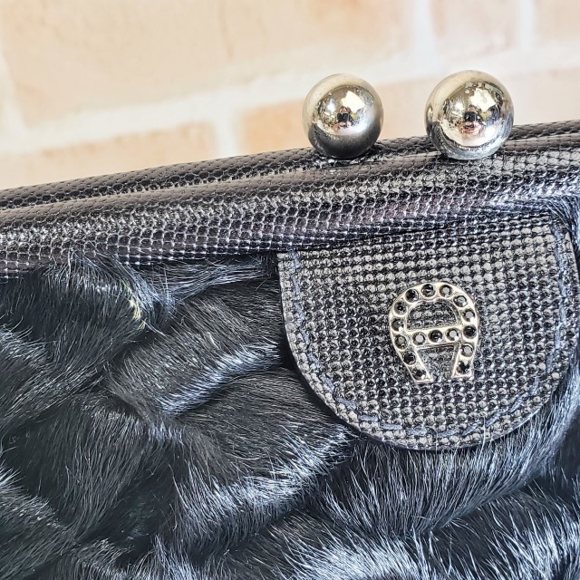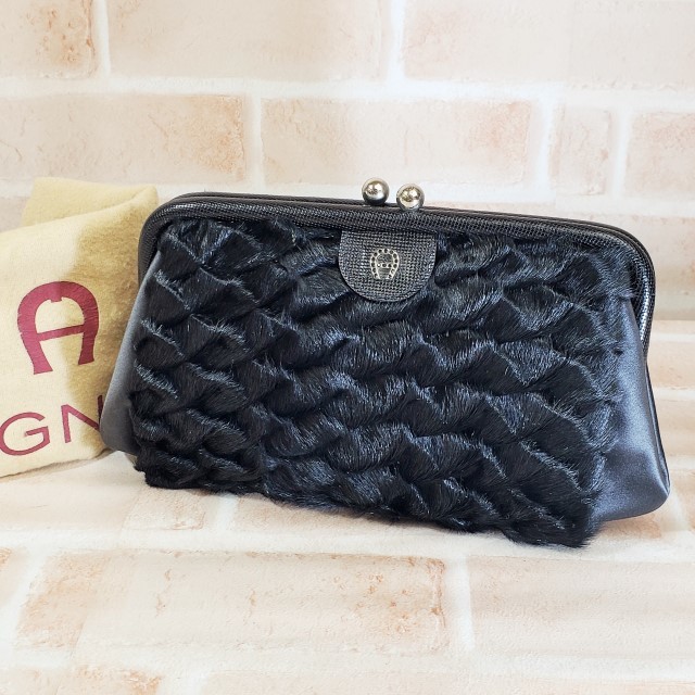 | 美品 アイグナー AIGNER ハラコファー がま口 クラッチバッグ パーティバッグ ブラック イタリア製 | |
