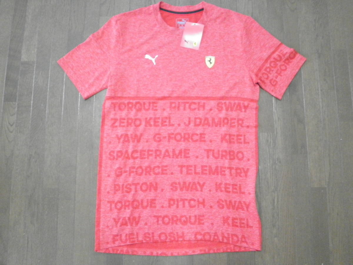 F1 スクーデリア フェラーリ レーシングチーム F1用語 Tシャツ 赤 男性M 新品です。※プーマ正規品です。男性Mサイズになります。写真のように、F1用語が、記載されたTシャツです。すごくかっこいいと思います。量産製品ですので、ノークレーム、ノーリターンでお願い致します。 発送は、定型外450円(保障無)またはレターパック430(保障無)、ゆうパックを予定しております。