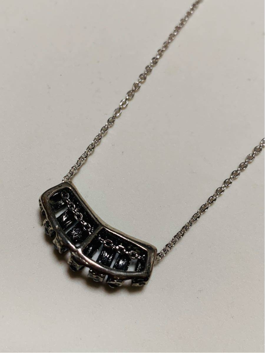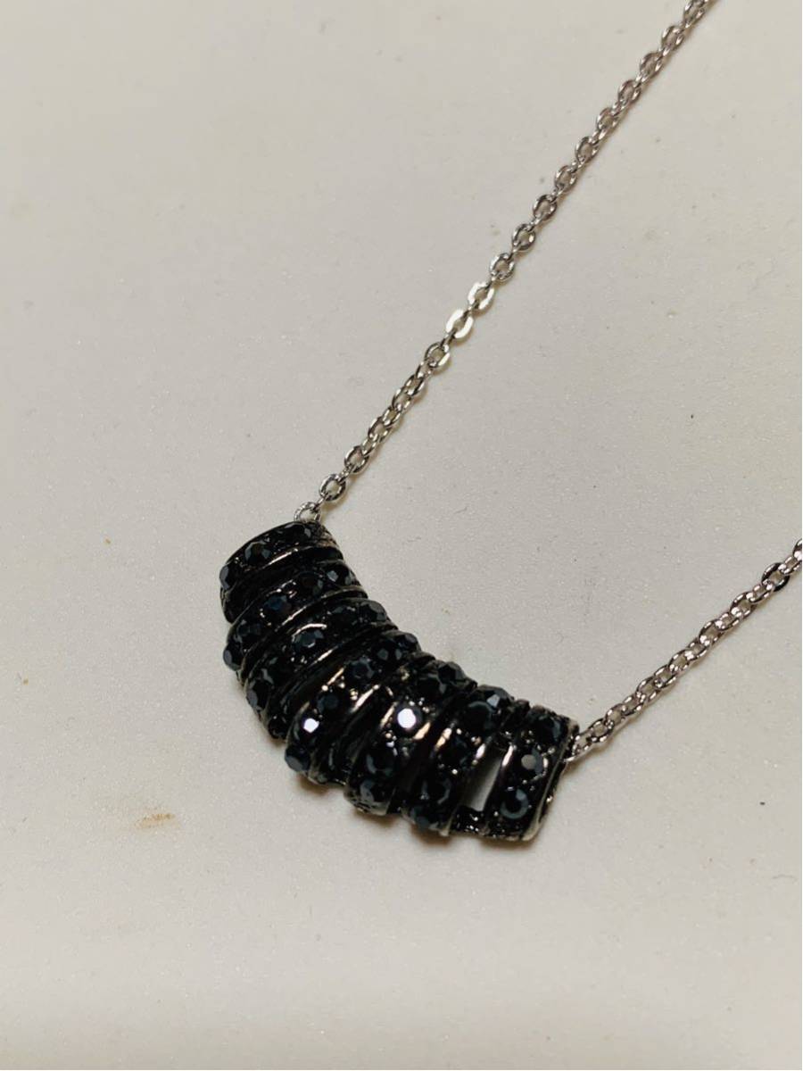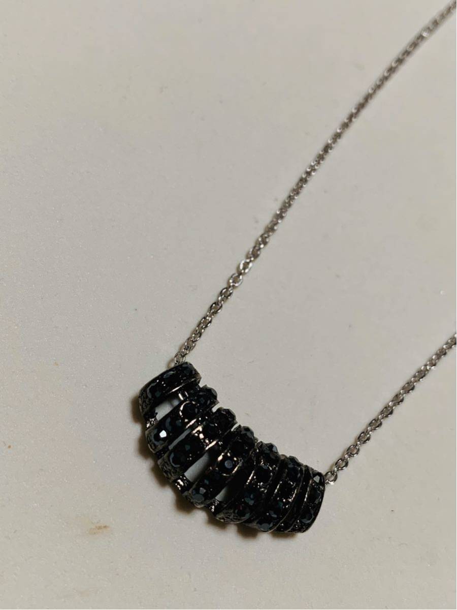 オニキスを使った、美しいデザイン、ペンダントネックレスです、トップのサイズは10×25ミリ、オニキスひと玉のサイズは直径2ミリで21個、使われております