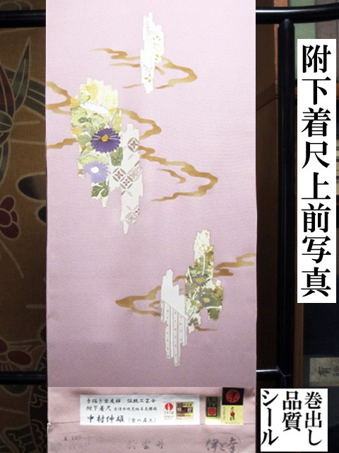 ■この作品は、本手描き友禅で伝統工芸士(経済産業大臣指定の技術者)の引染士、友禅士、金彩士など、12工程以上の職人さんが、分業で加工に参加しています。これぞ手描き京友禅の逸品物です。