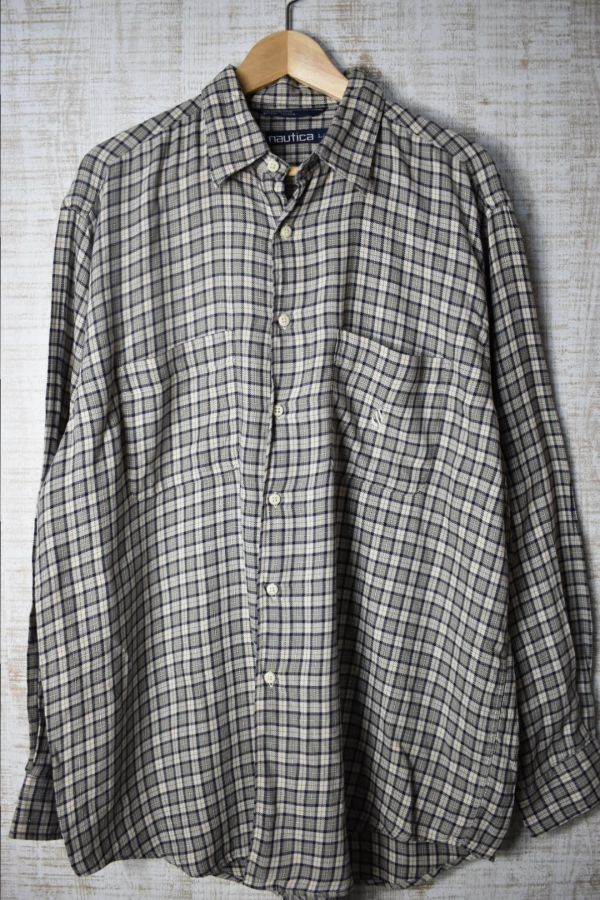 ●US USED NAUTICA ノーティカ ネルシャツ チェック ベージュ薄茶【L】