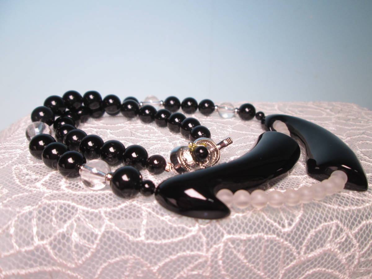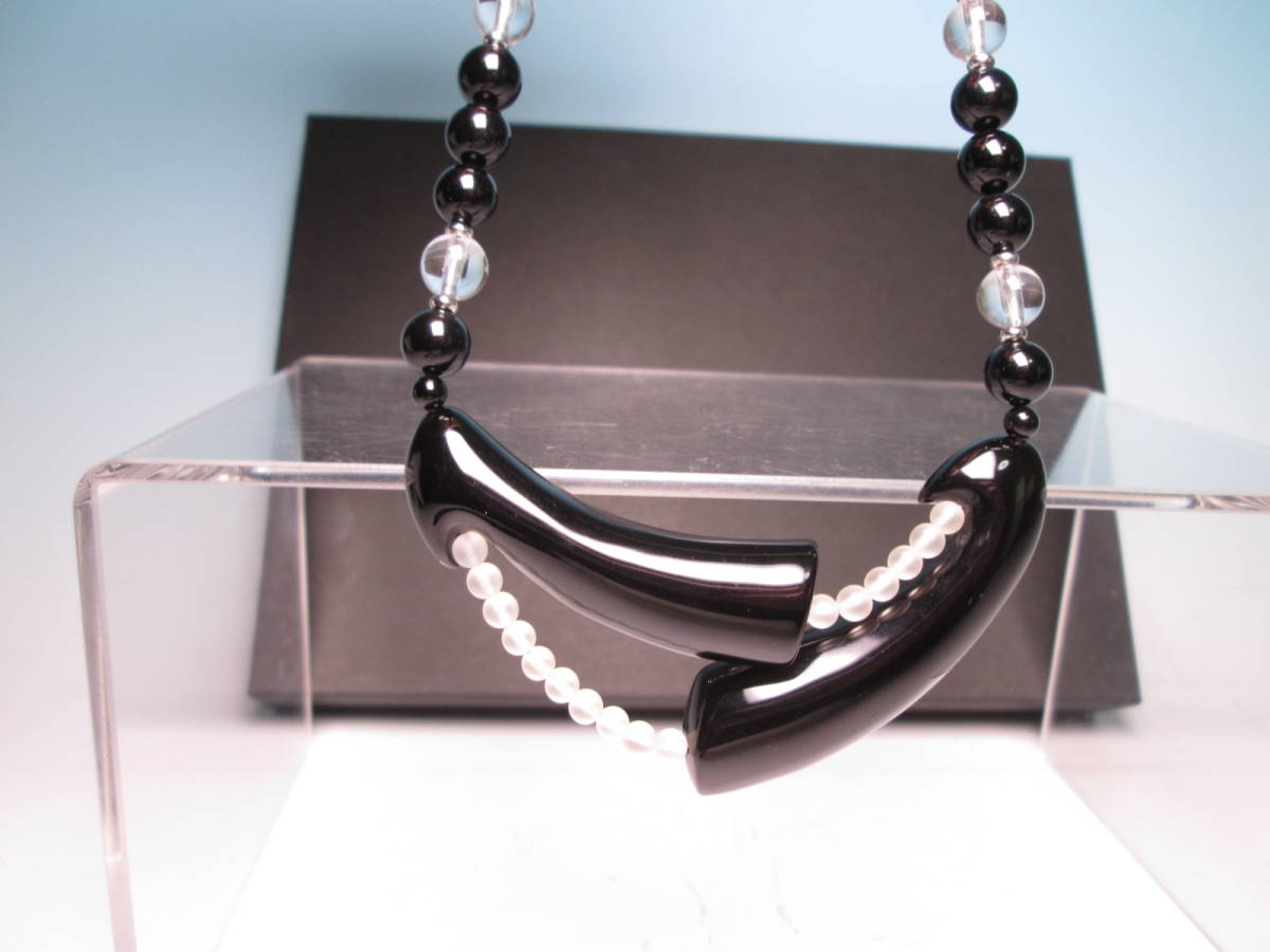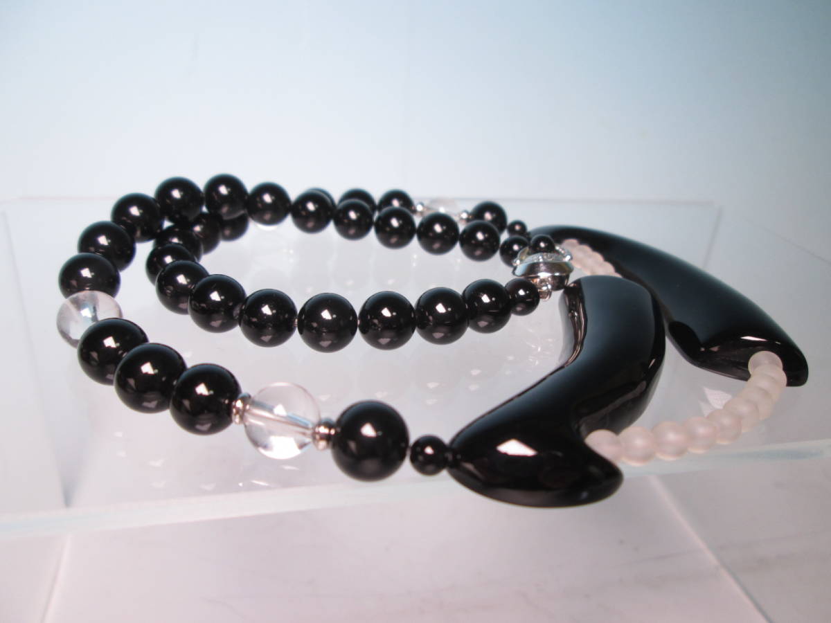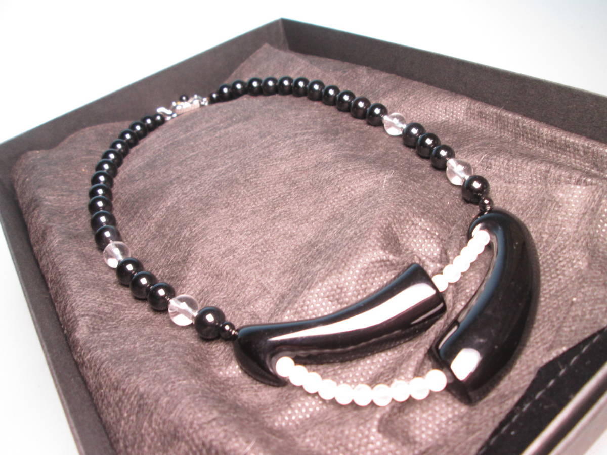 ☆SILVER 本水晶&オニキスのデザインネックレス 52g ケース付
