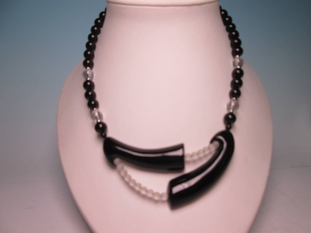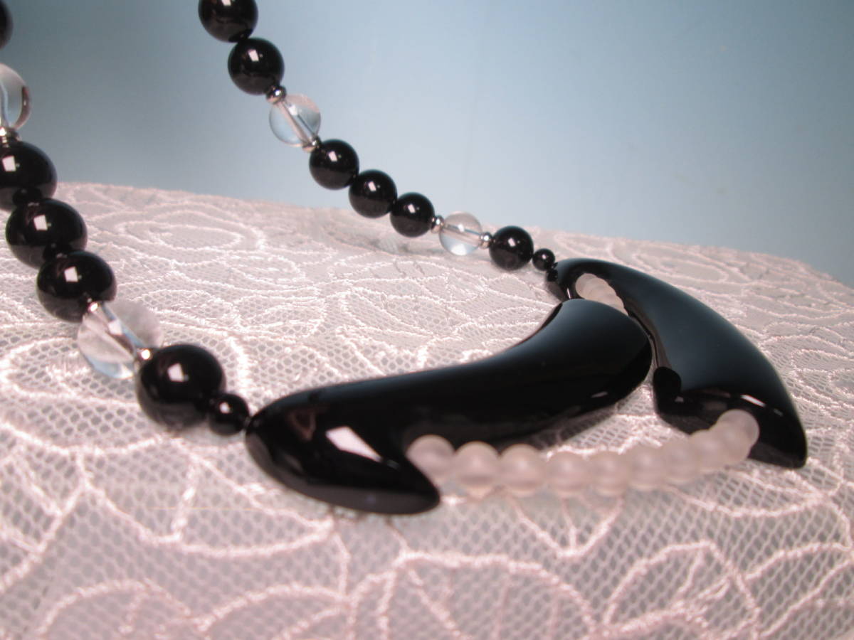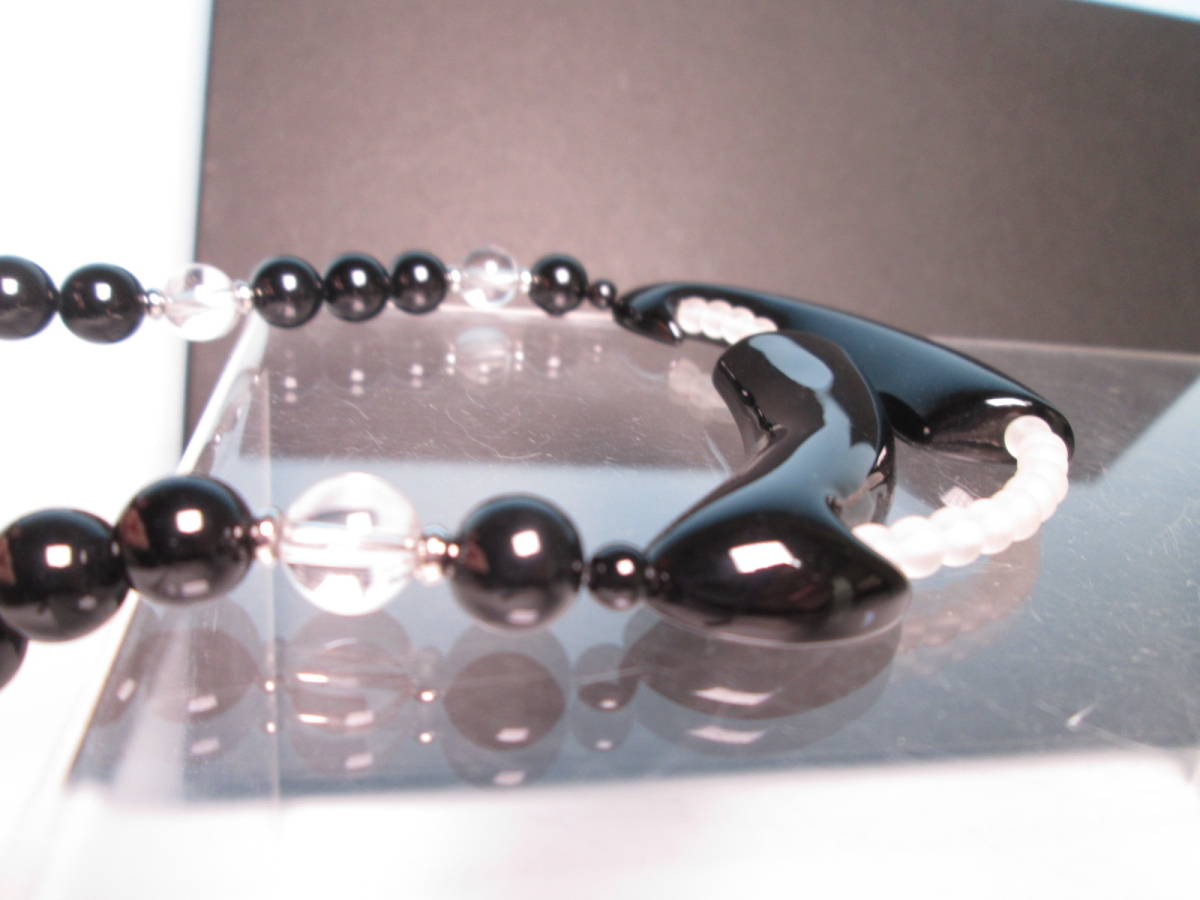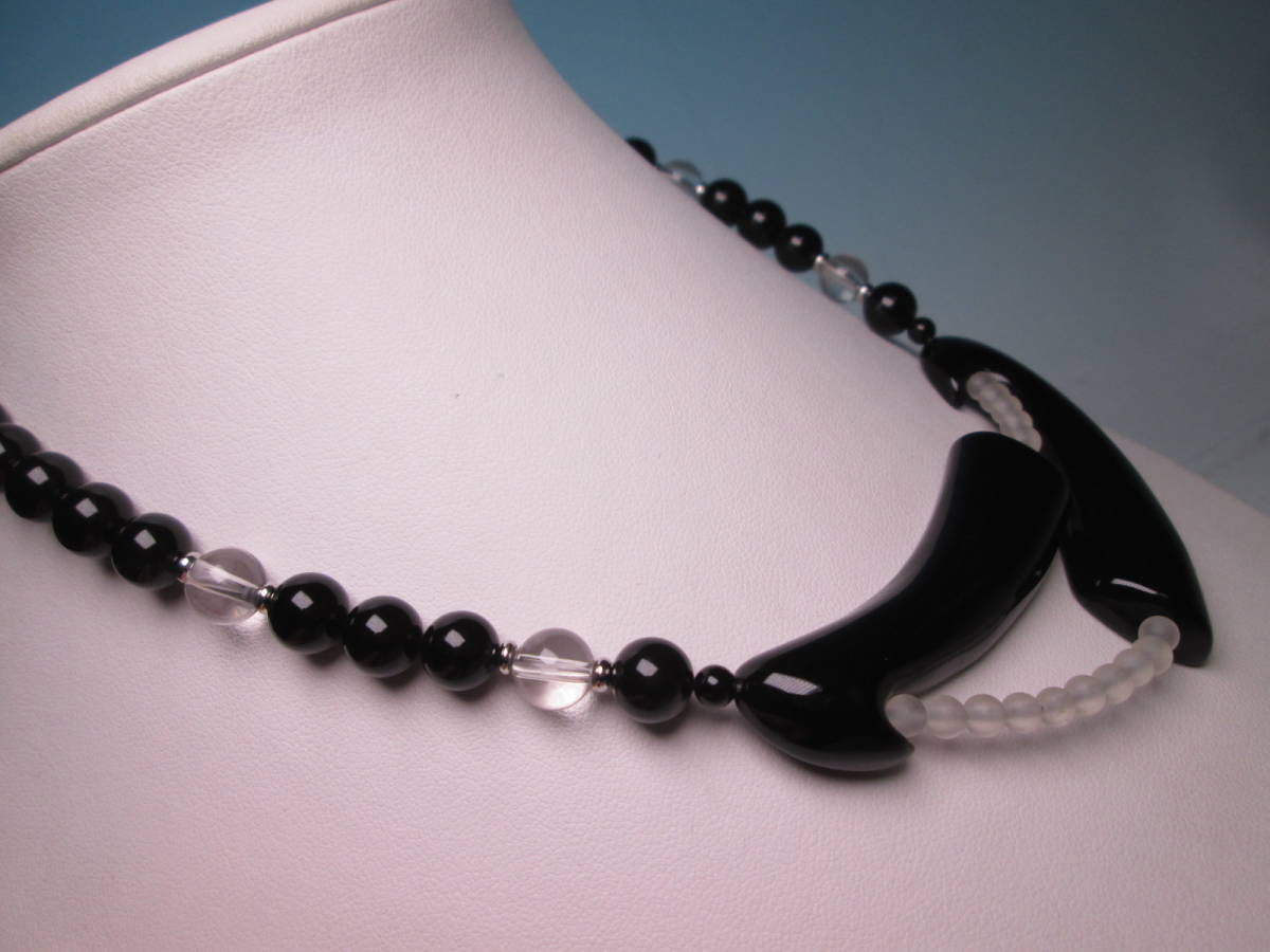 ☆SILVER 本水晶&オニキスのデザインネックレス 52g ケース付
