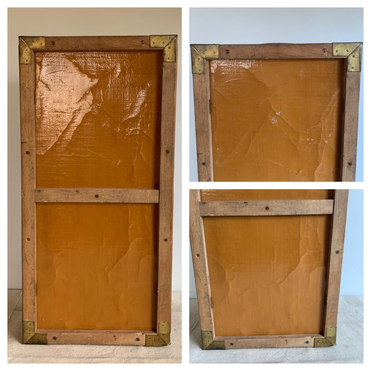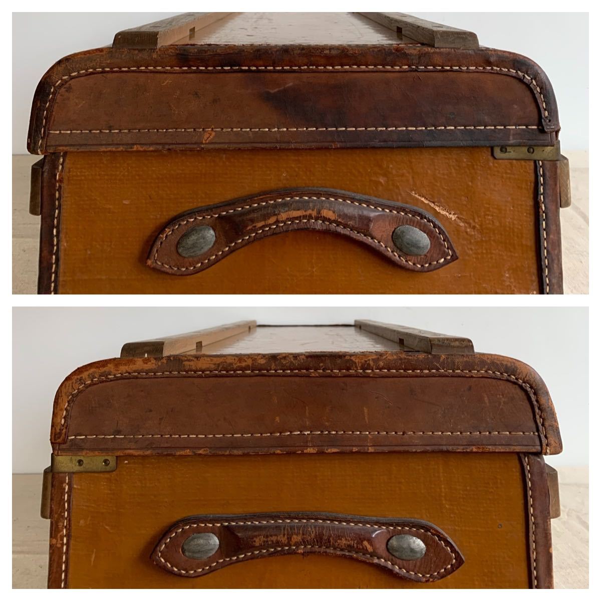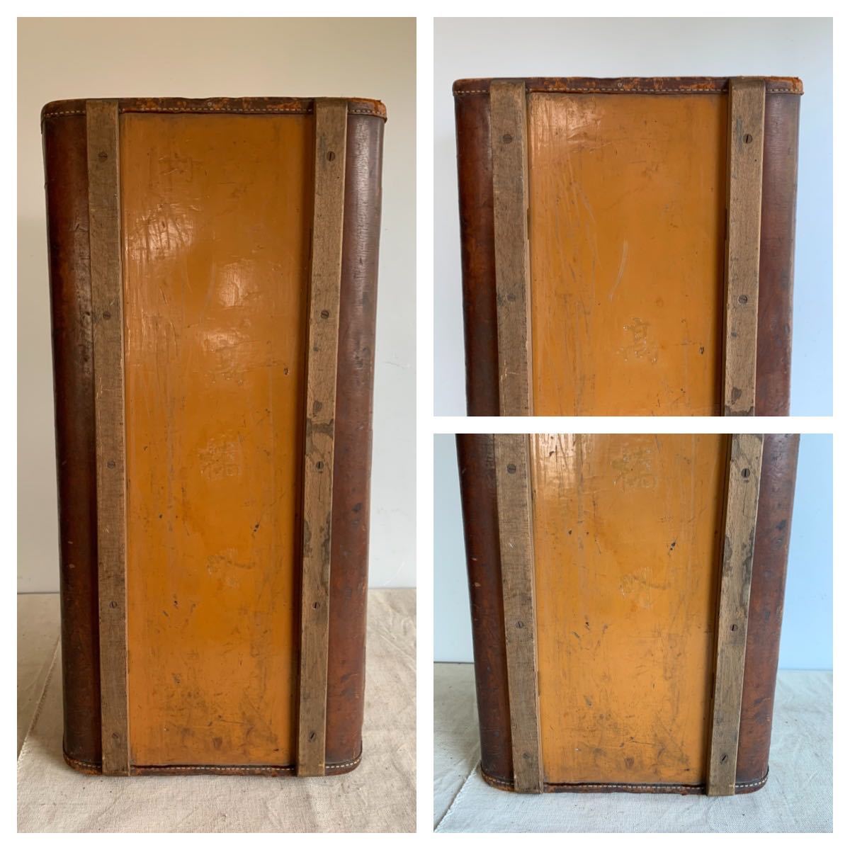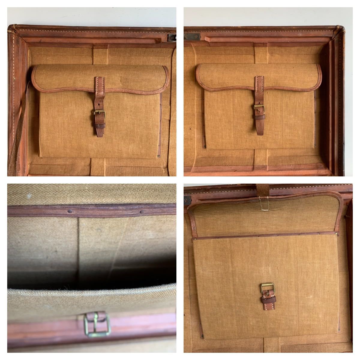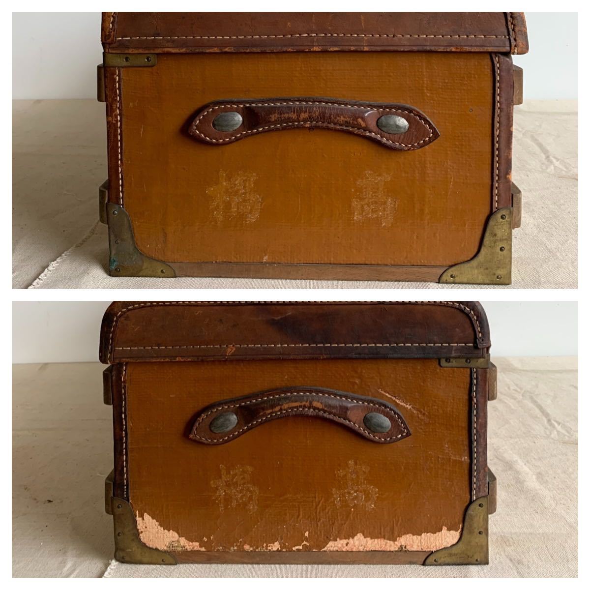 鍵付きの大き目の古いトランクです。真鍮金具、木、皮と色々な素材が使われています。しっかりとした作りで、衣類や小物、本などの収納ボックスとして、お部屋のインテリアやお店の什器に使って頂くと素敵だと思います。上にガラス板などを置いてローテーブルとして使っても良さそうです。鍵はありますが、やり方が悪いのかうまくかかりません。