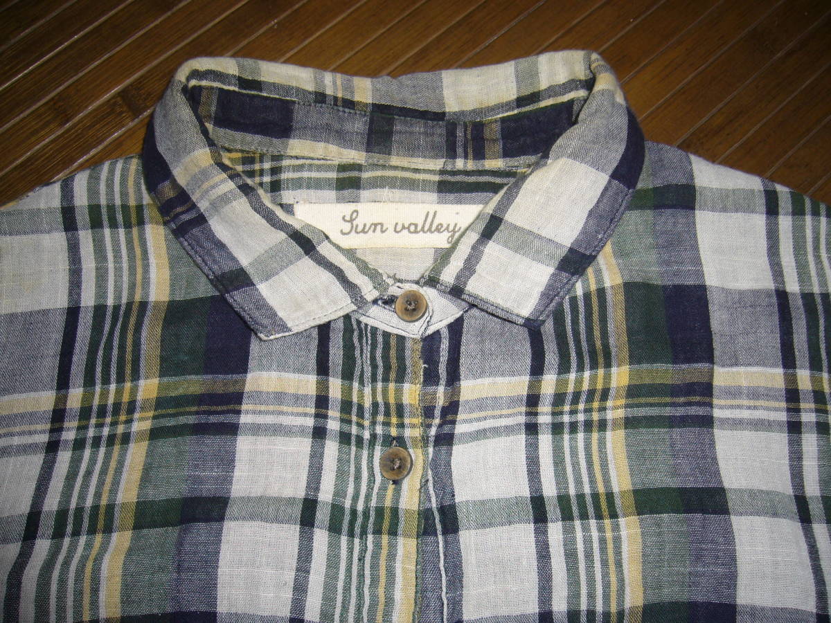 465-77♀: sun valley サンバレー 長袖ワンピース サイズ.M 色.紺×グリーン チェック トラッド・IVY ㈱フォーシーズン