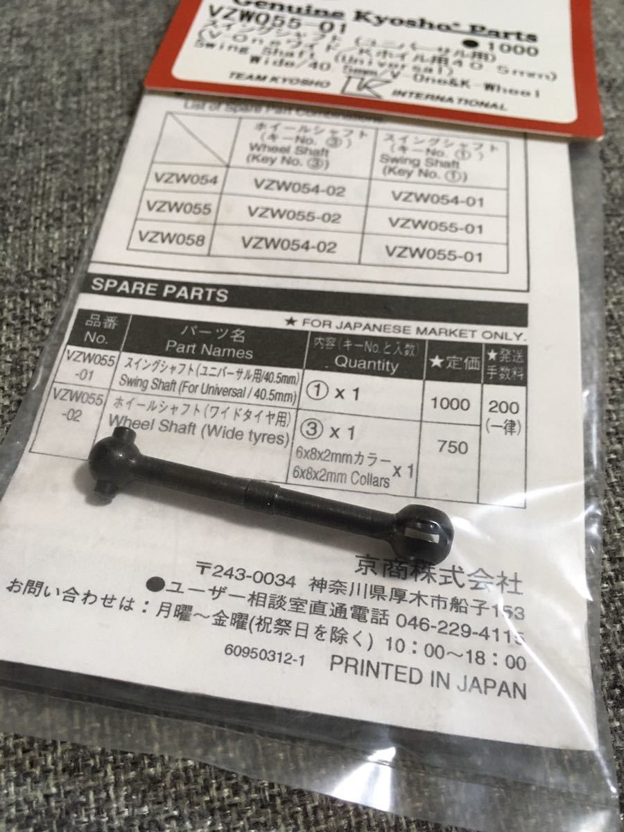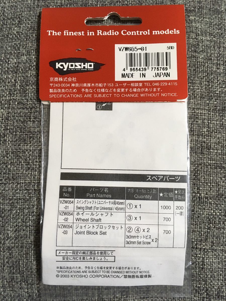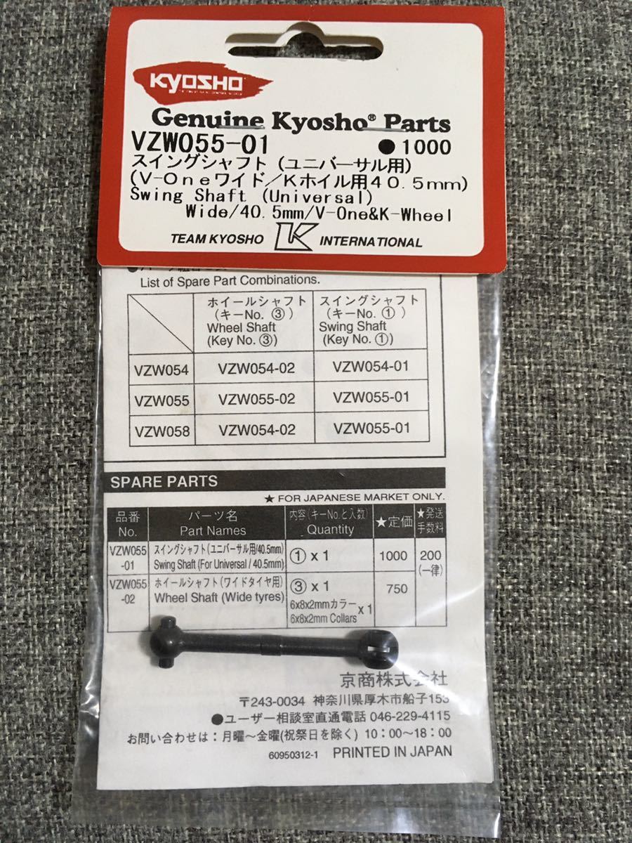 商品説明 | 京商 スイングシャフト (V-ONEワイド/Kホイル用 40.5mm) (VZW055組換部品) です。 新品未開封品です。 ITEM No.VZW055-01 ストック部品だったためタグには歪みやシワがありますのでご了承ください。 |