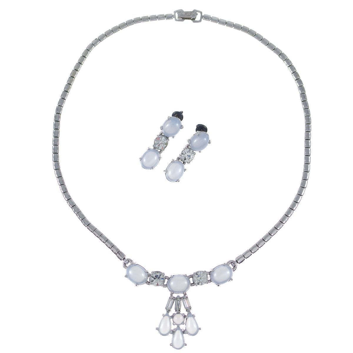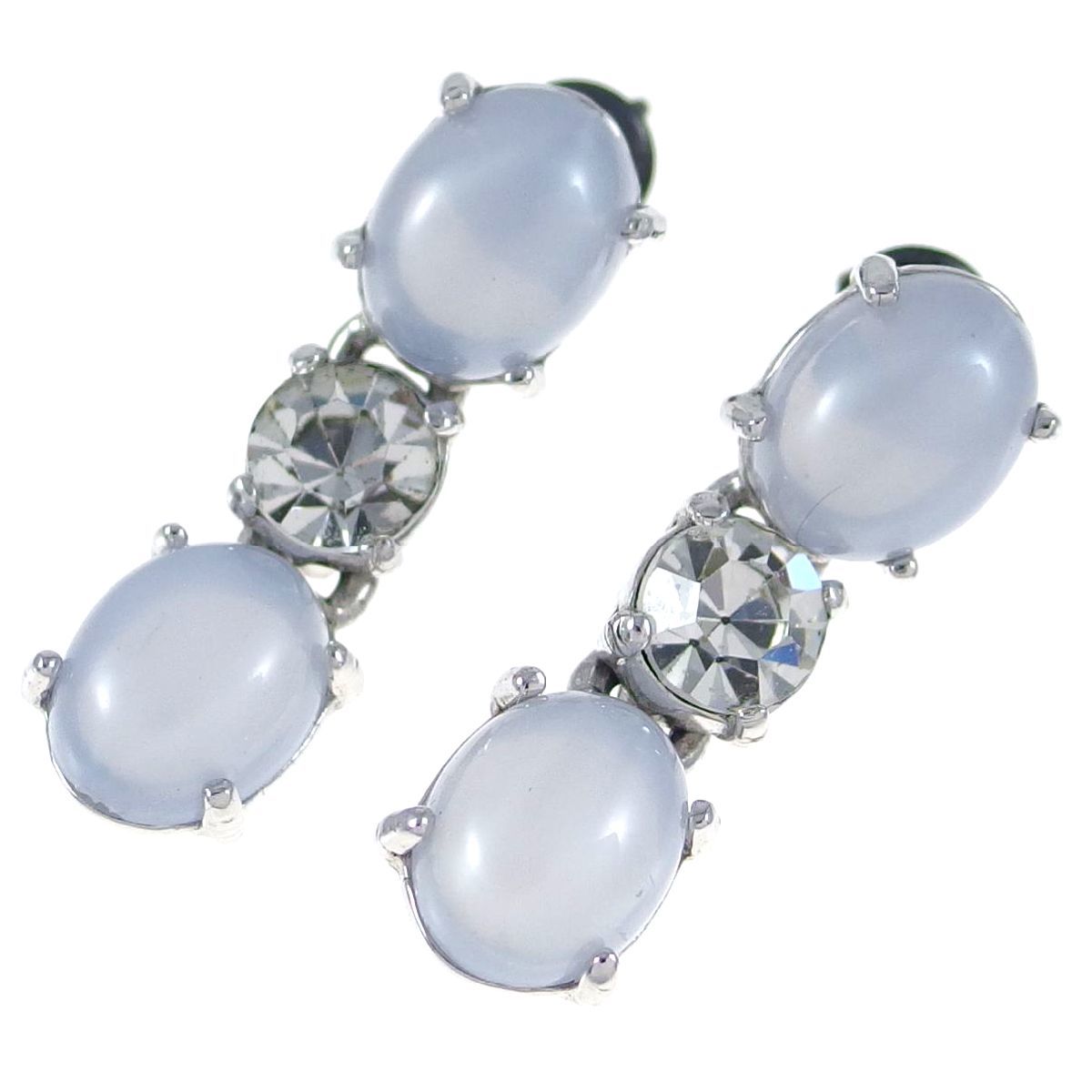 A4711◆ ヴィンテージピアス * イヤリング ◆ 薄いラベンダー系カラーのカボション & クリアラインストーン * 全石爪留め ◆