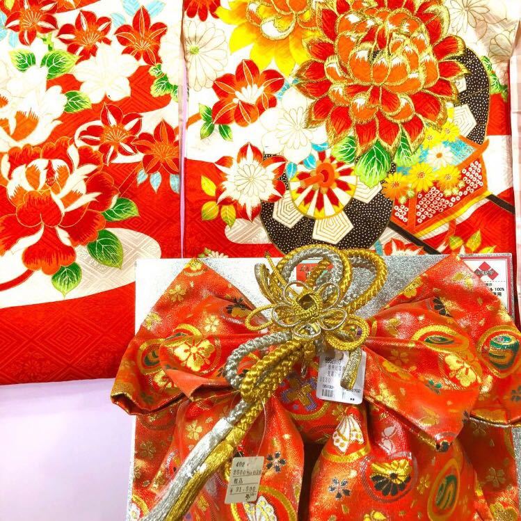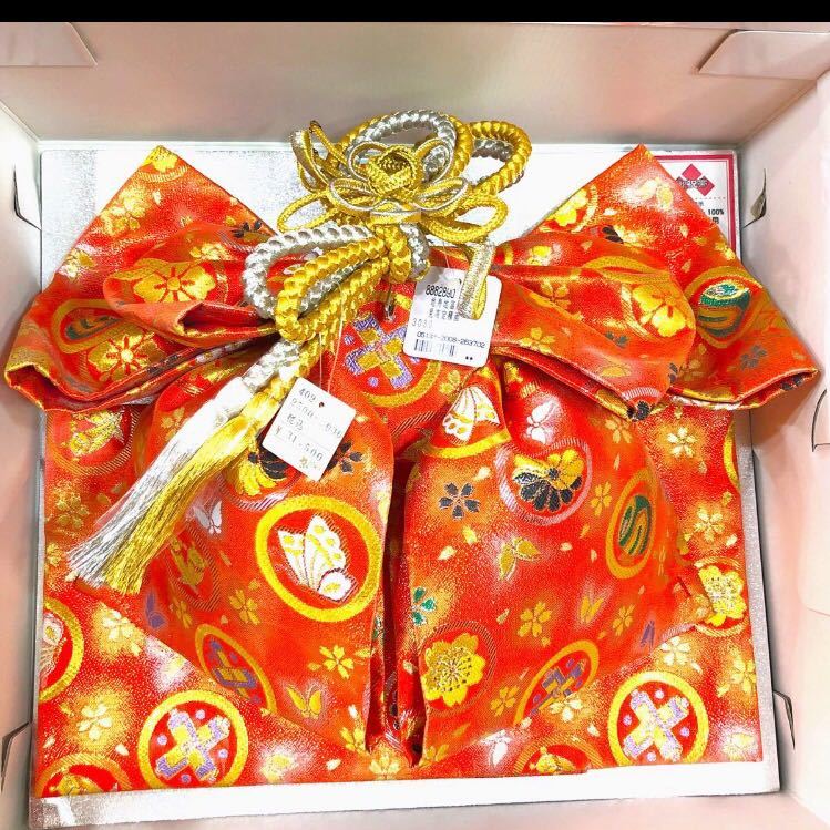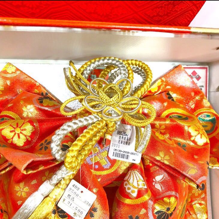 西陣奥村作 朱赤に金桜と蝶 巻物柄です。